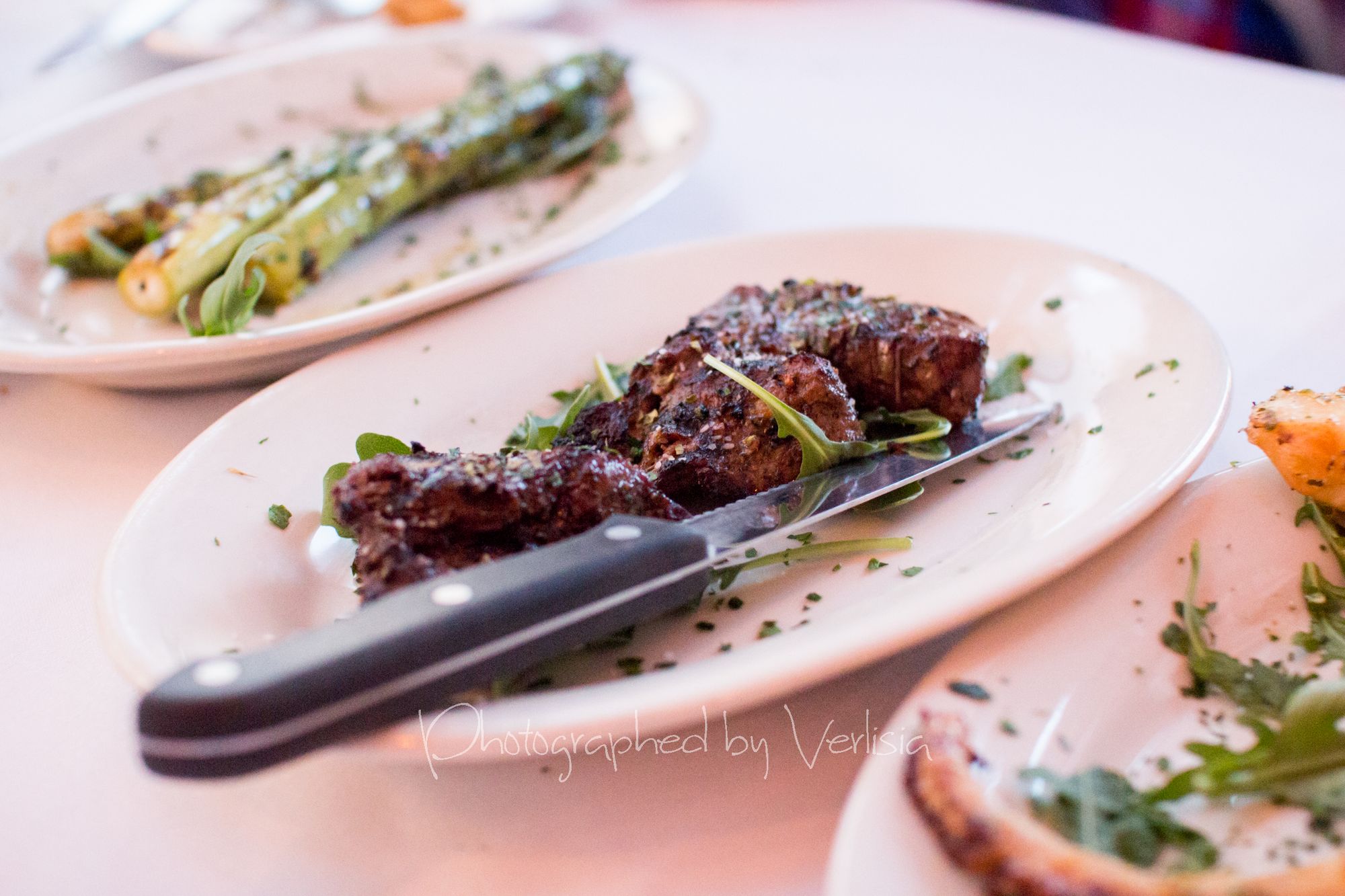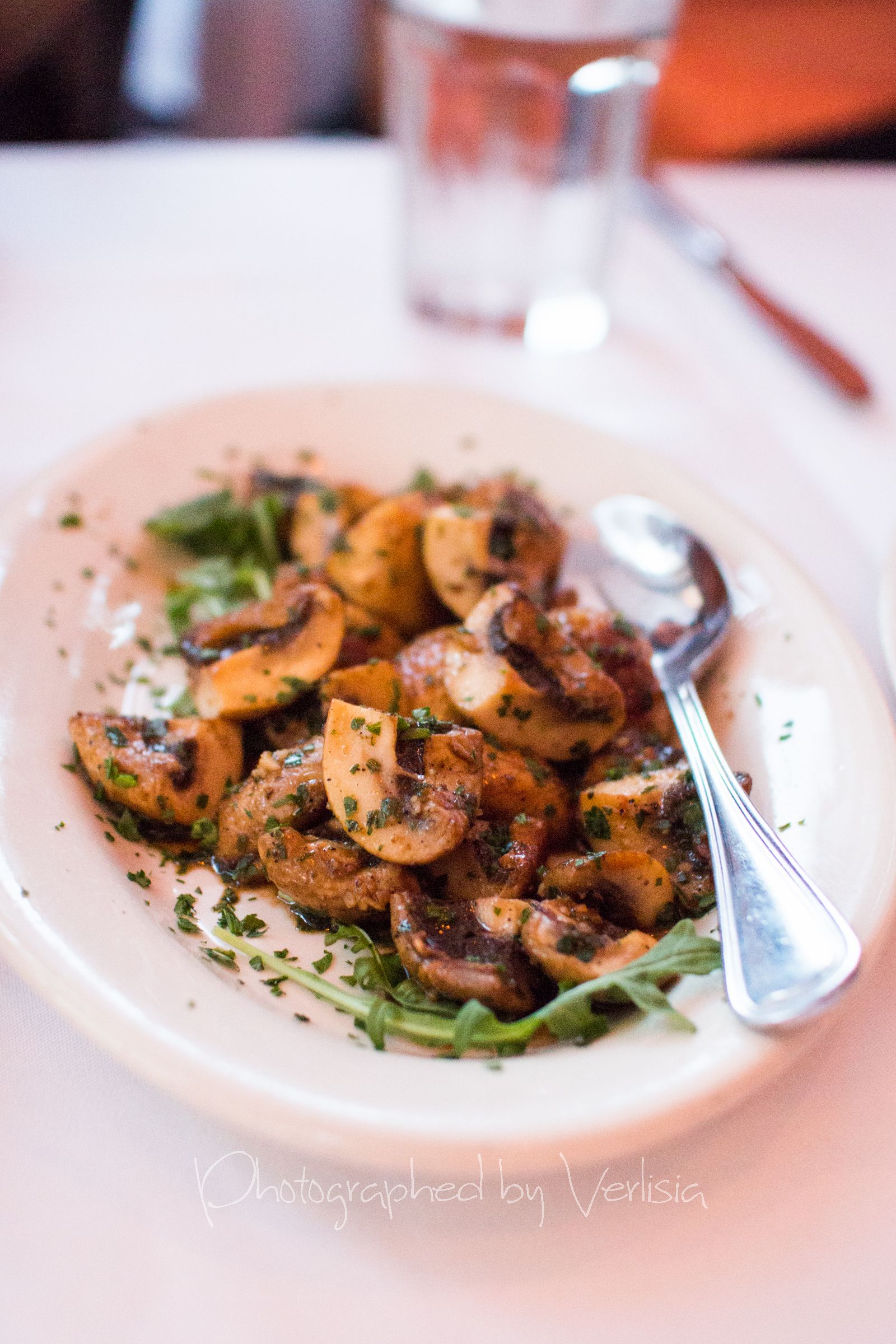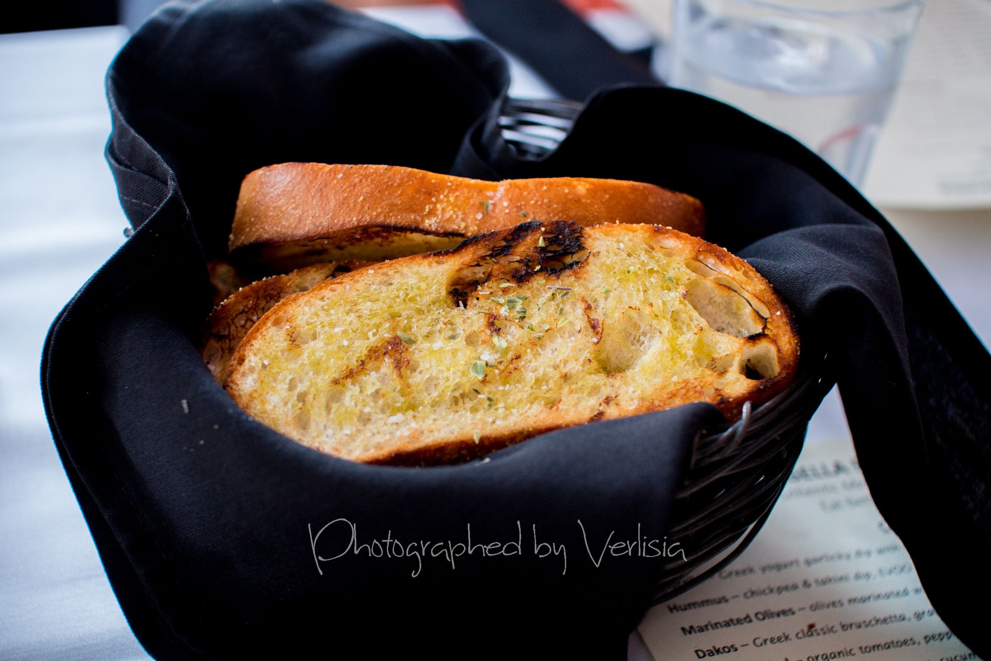 Garlic Bread, WineTzatziki (Greek yogurt garlicky dip with Mediterranean herbs & EVOO), Hummus (Homemade chickpea & tahini dip, EVOO), PitaCrispy Calamari, Mushrooms Provencale (Lightly sauteed with a touch of brandy and garlic), Shrimp San Sebastian (Garlic, EVOO & Mediterranean herbs)Asparagus, Grilled Octopus (Marinated with Mediterranean herbs & spices)Filet Mignon (Certified angus beef skewer), Genovese a la Spaghetti (Classic pesto & shaved parmesan)
