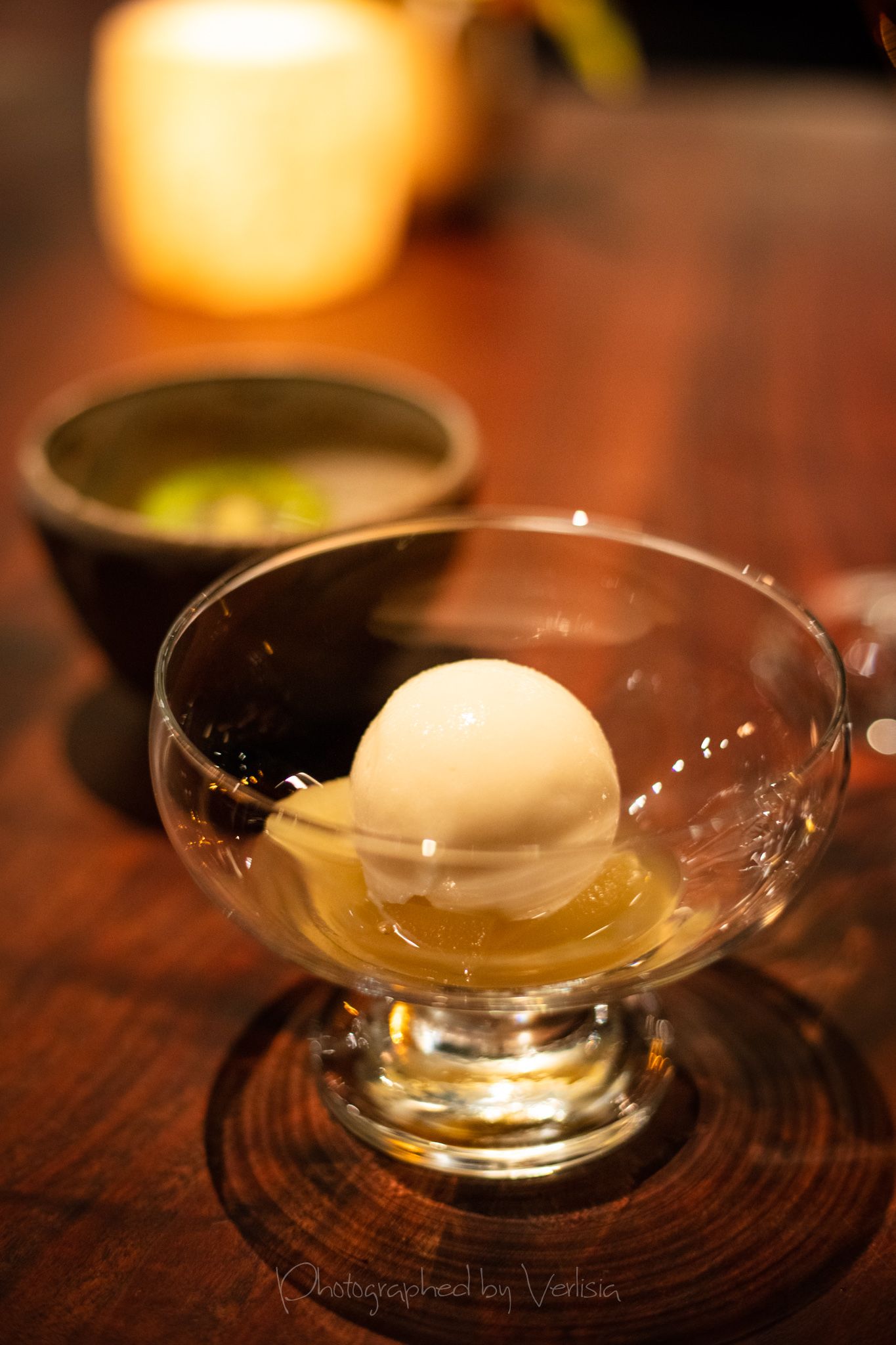 Pear & Yuzu, Kiwi with Cognac & Madagascar Vanilla, Smoked Sundau