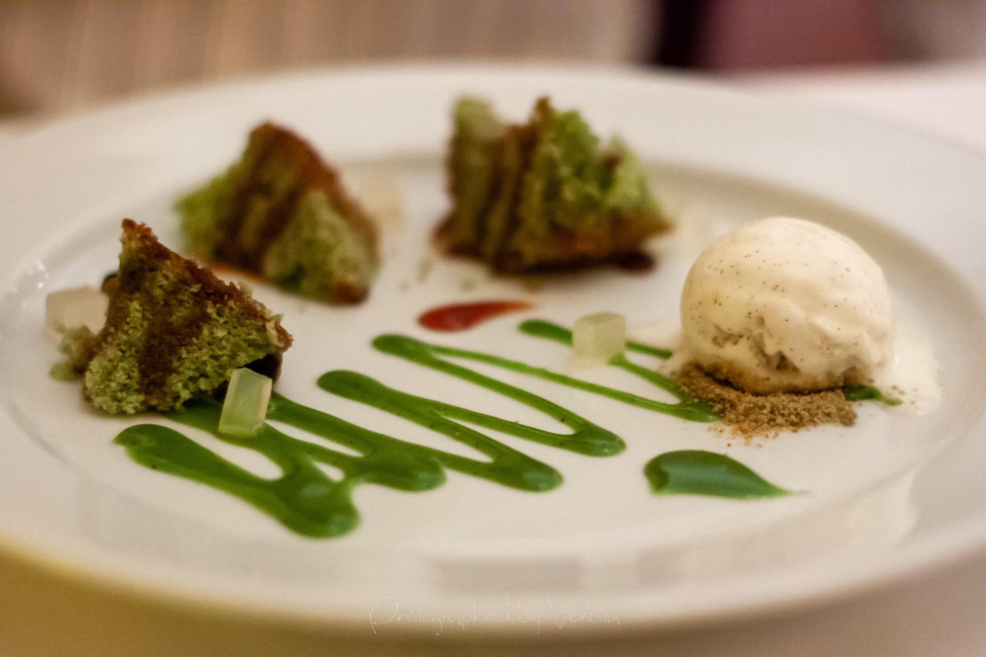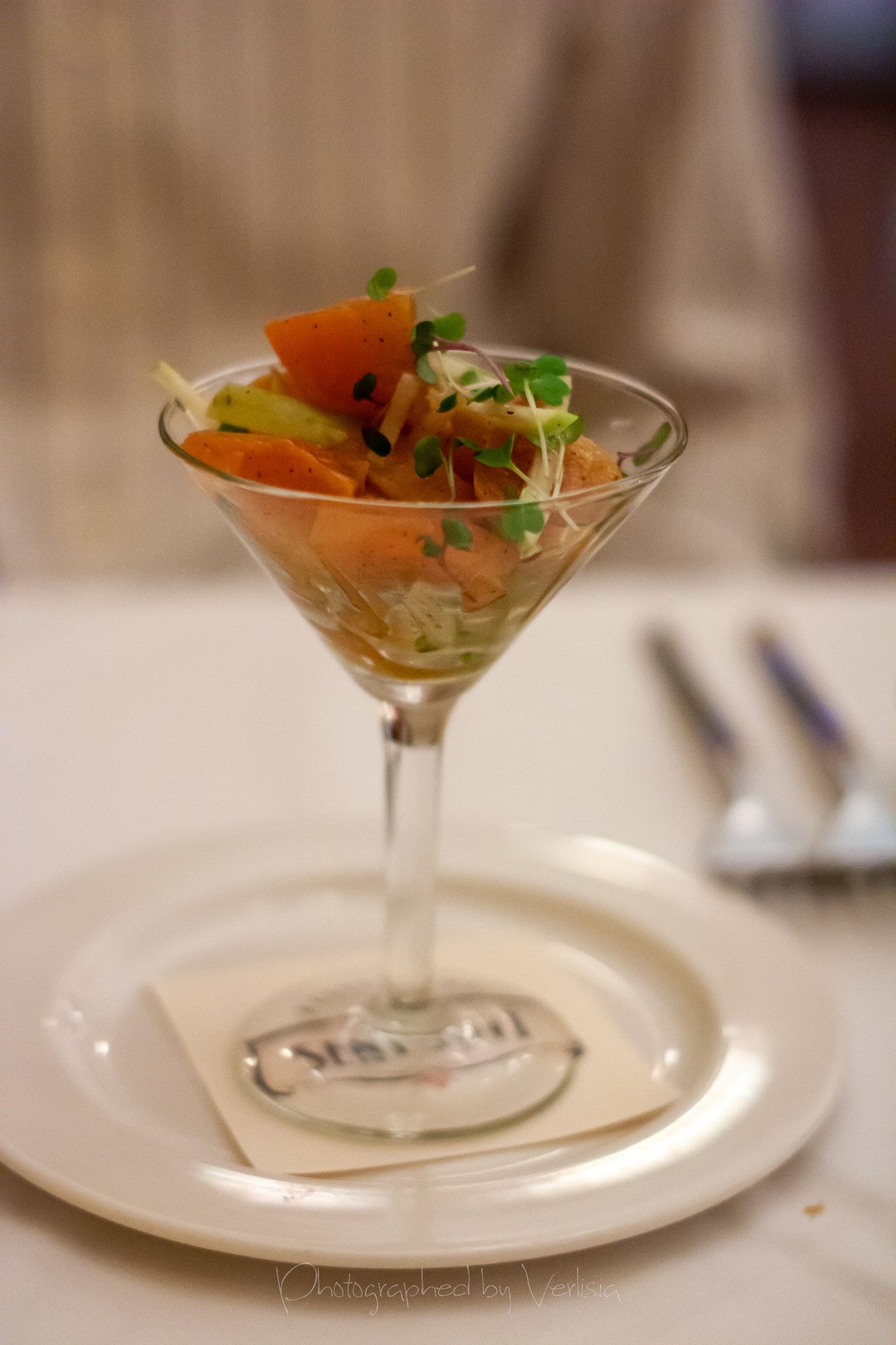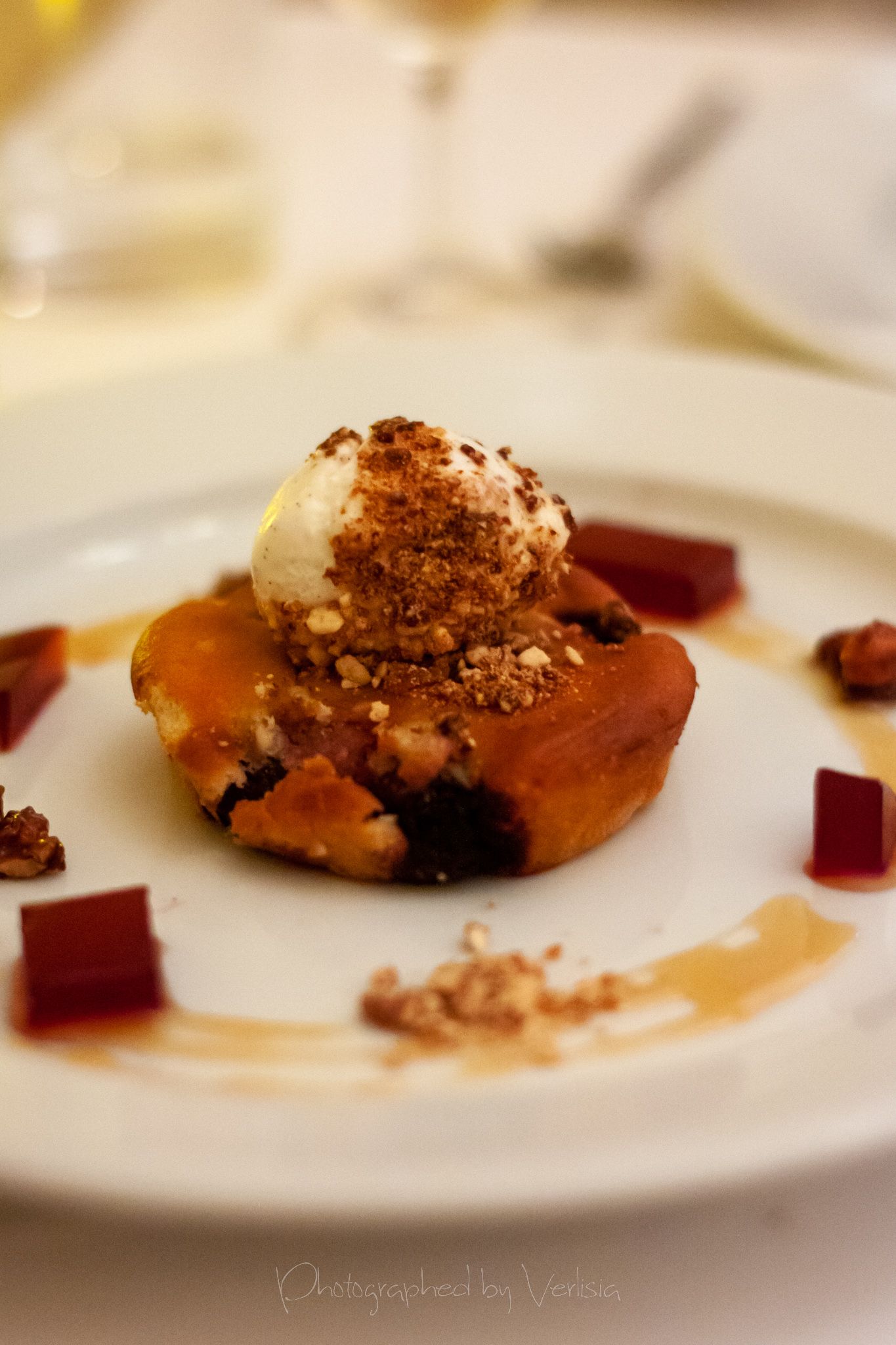 amuse bouche (tomato puff), Smoked Tombo Tuna with Harissa Crème Fraîche and American Sturgeon Caviar, East Coast Scallop on Soft Scrambled Scallops with Caramelized Scallop Jus