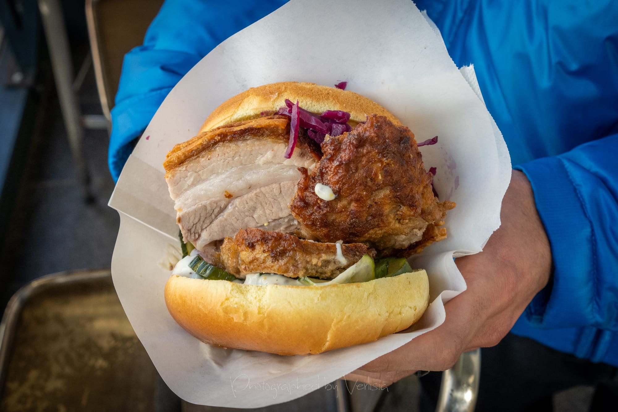 Half Roasted Pork Belly Half Meat Ball Sandwich