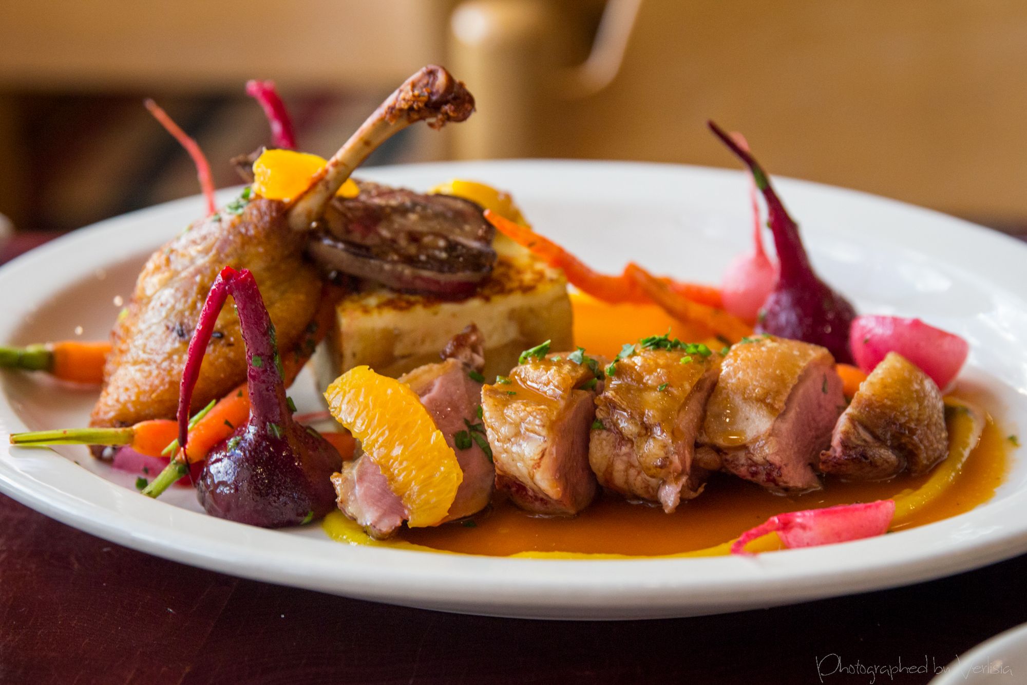 Cuisine - American Snowgoose Grill, St Mary, Montana Snowgoose Grill, St Mary, Montana (July 2014) 3 Going-to-the-Sun Rd, St Mary, MT 59417July 2014A La Carte Dinner MenuFreshly baked bread, Olive Oil with Vinegar and Salt, Paradise PointIced Tea, Salad, Squash BisqueAmerican Picnic Basket, GumboRiesling, Duck Three Ways with Orange Glaze, Pan Seared TroutGoat Lick Chili, Chicken Schnitzel, Sirloin Steak Share