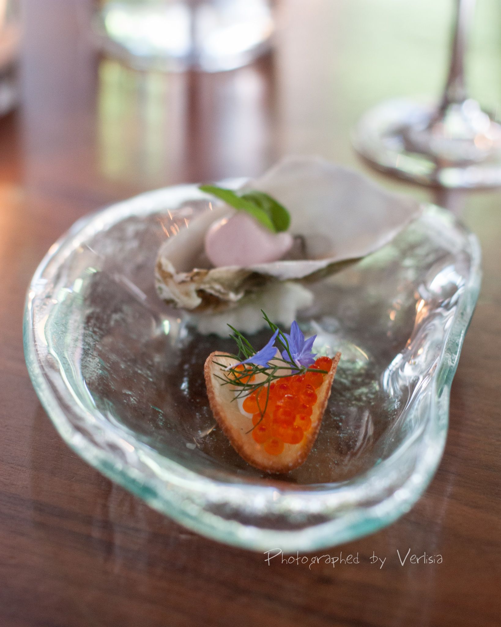 Summer Tasting Menu Course #1 - Marin miyagi |Trout Roe | Buttermilk, Brut Sparkling Wine Mary Elke North Coast