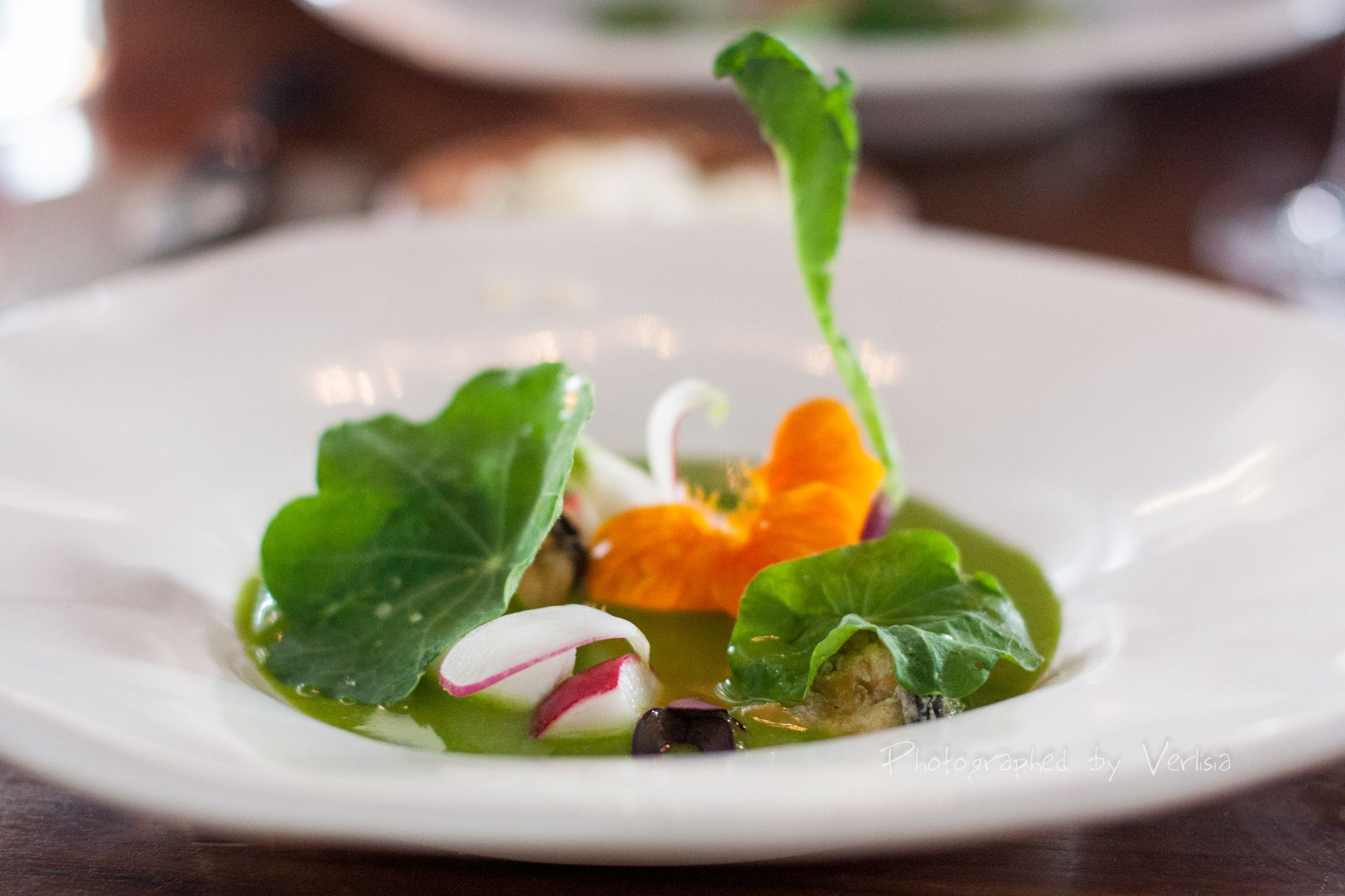 Summer Tasting Menu Course #3 - Marigold greens | Radish | Tomales bay mussel, Summer Tasting Menu Course #4 - Beet | Vadouvan | Red mustard