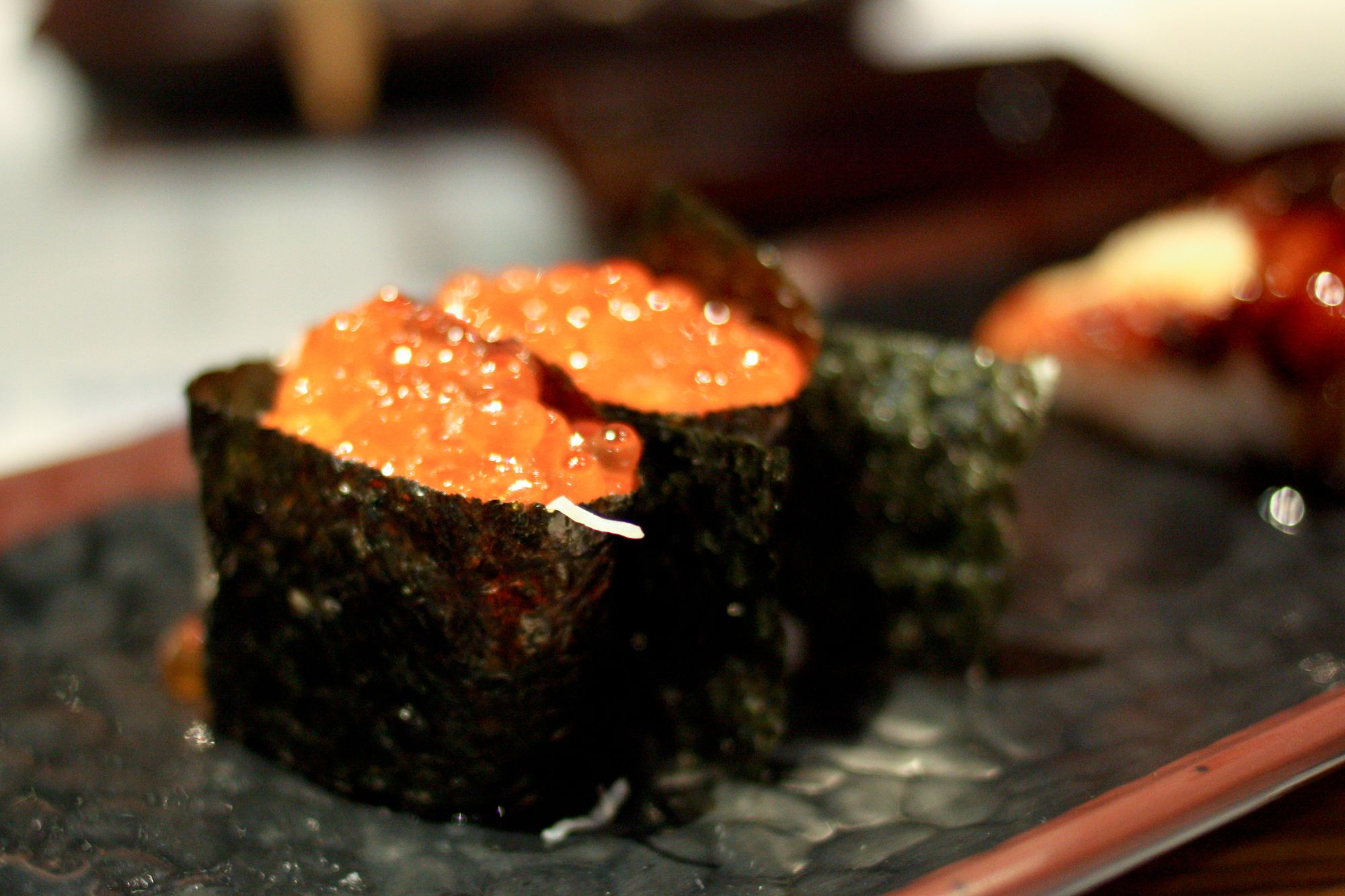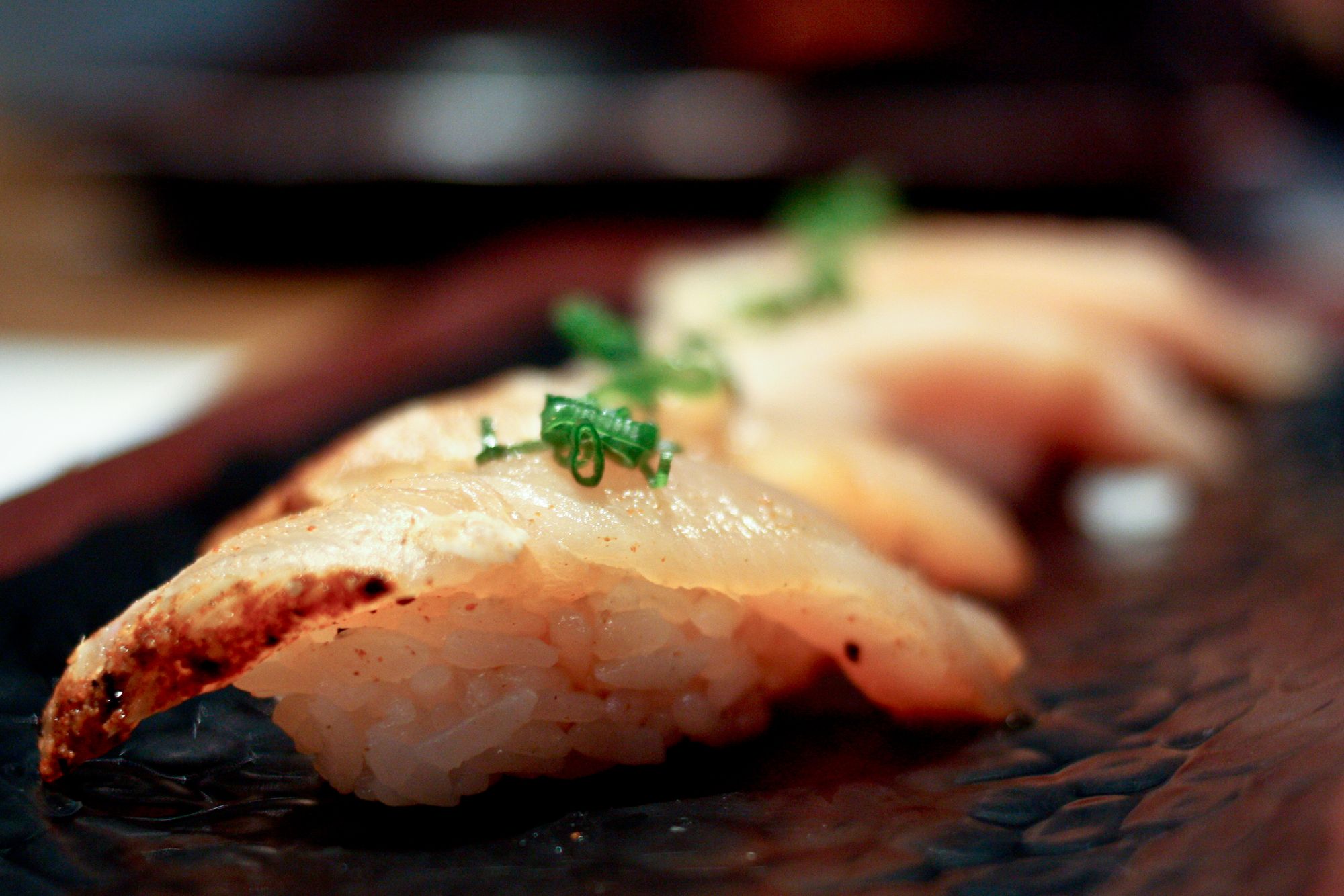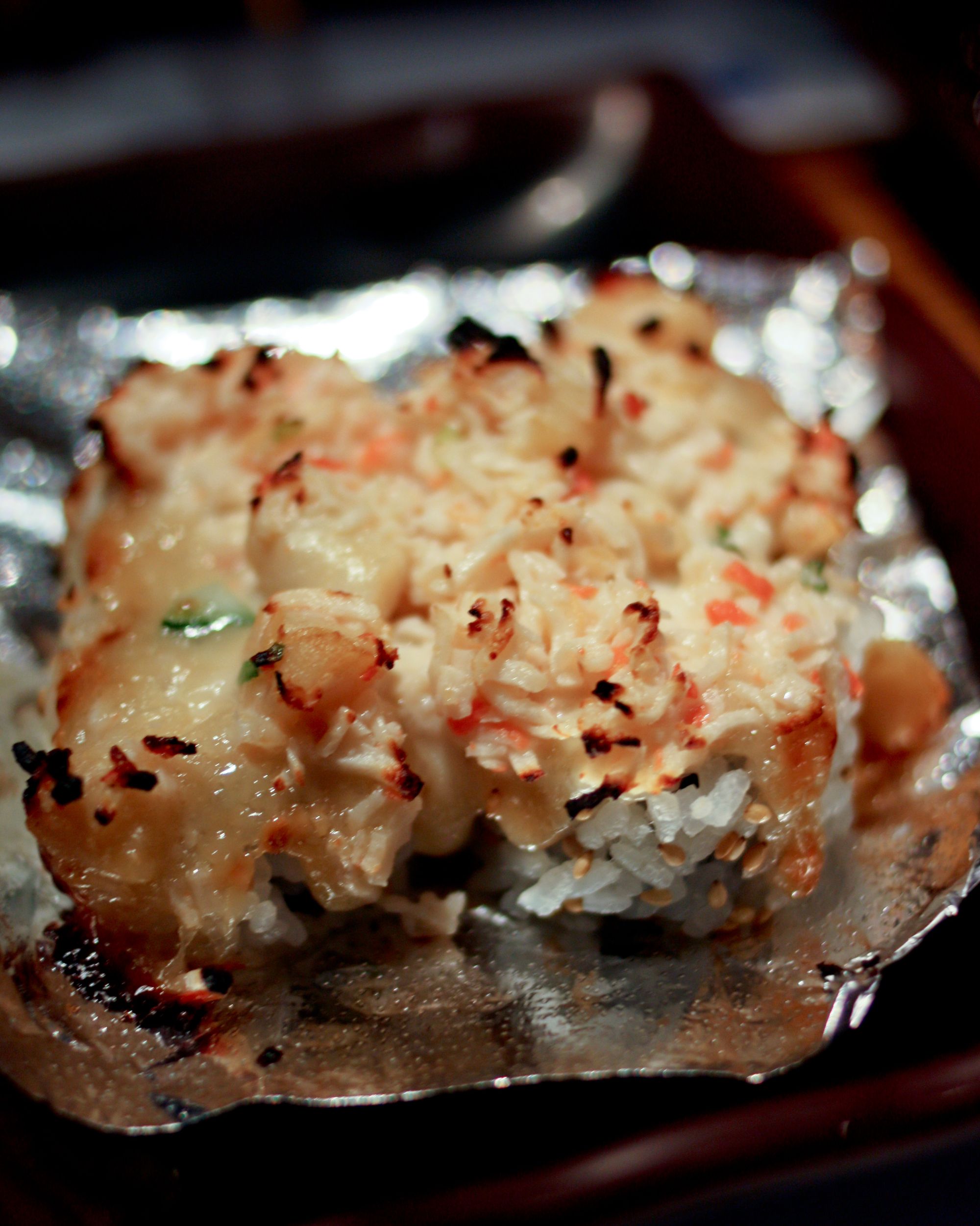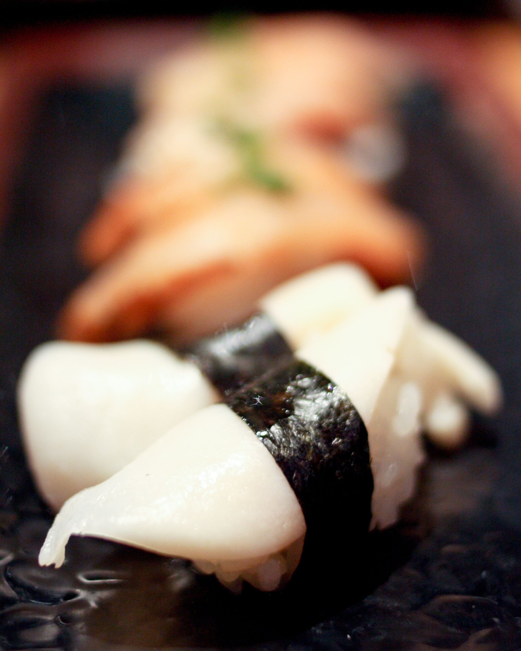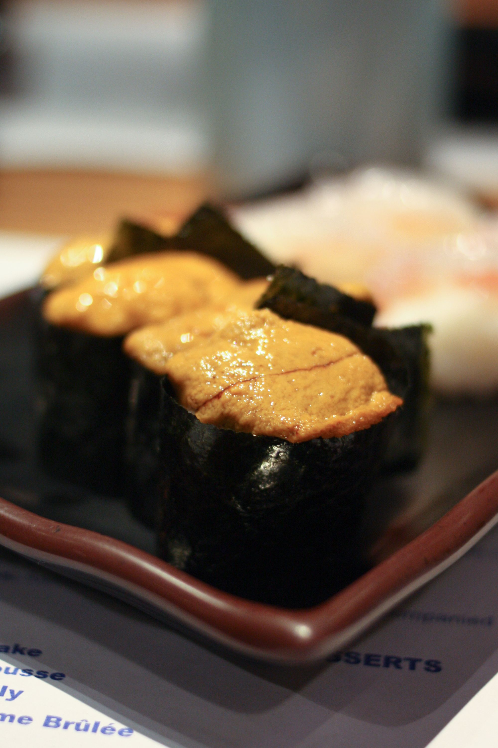 Pork Belly (Braised and grilled served with mango salsa), Super White Tuna (Marinated with sweet miso)Abaebi Nigiri, Uni NigiriNigiri (Salmon, Hamachi, Saba, Super White Tuna and Maguro), Saba NigiriSuper White Tuna and Maguro NigiriYum Yum Scallop Nigiri, Cold Tofu Appetizer (Housemade tofu with 3 condiments)Shrimp Tempura, Negitoro NigiriJapanese Snapper and Hotate NigiriVolcano Roll, Snow Crab Meat Nigiri, Ikura Nigiri, Unagi NigiriCajun Albacore Nigiri, Tako NigiriWhite Clam Nigiri, Bincho (Albacore) Nigiri, Hamachi NigiriChocolate Mousse, Green Tea Cake