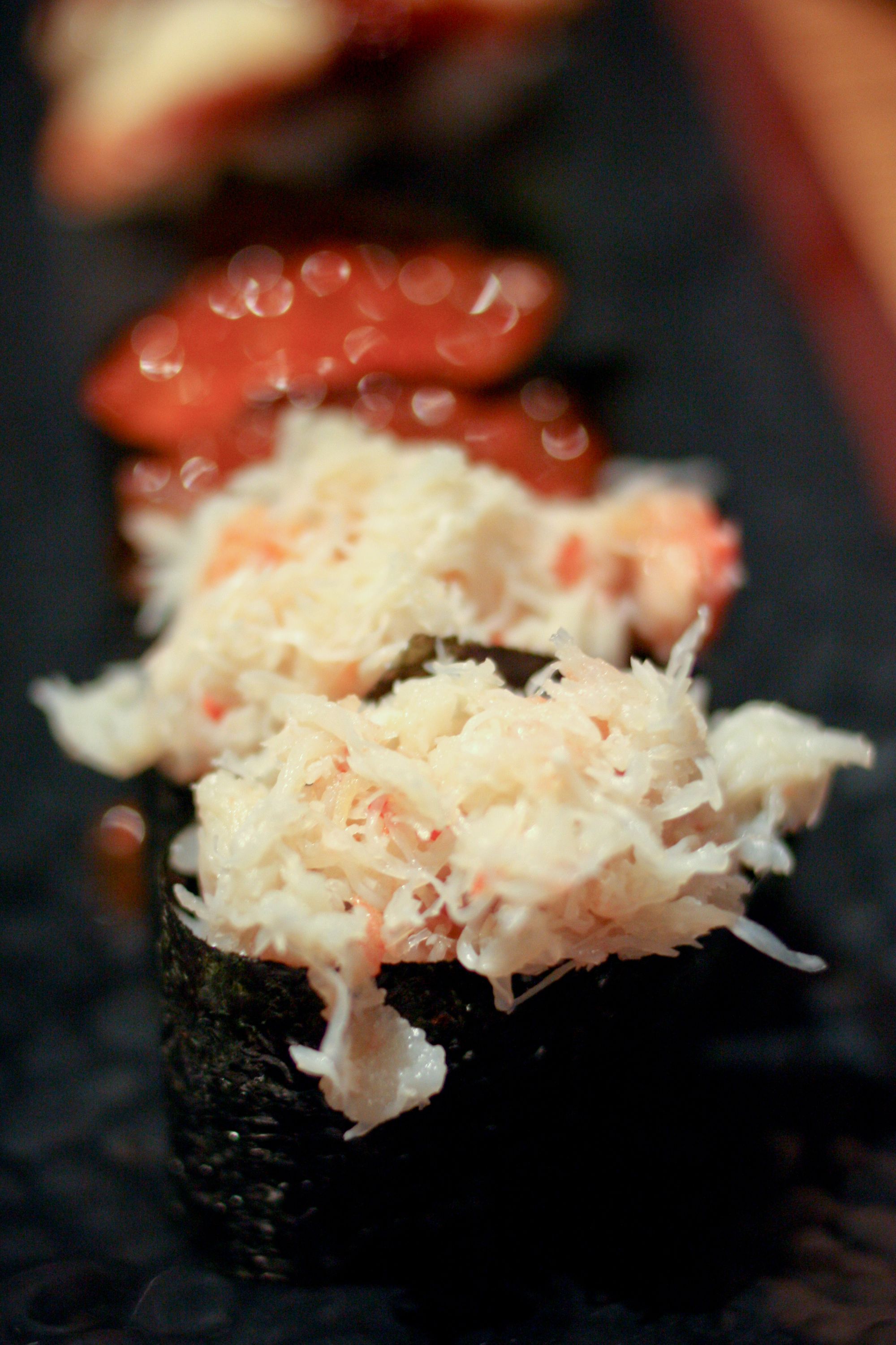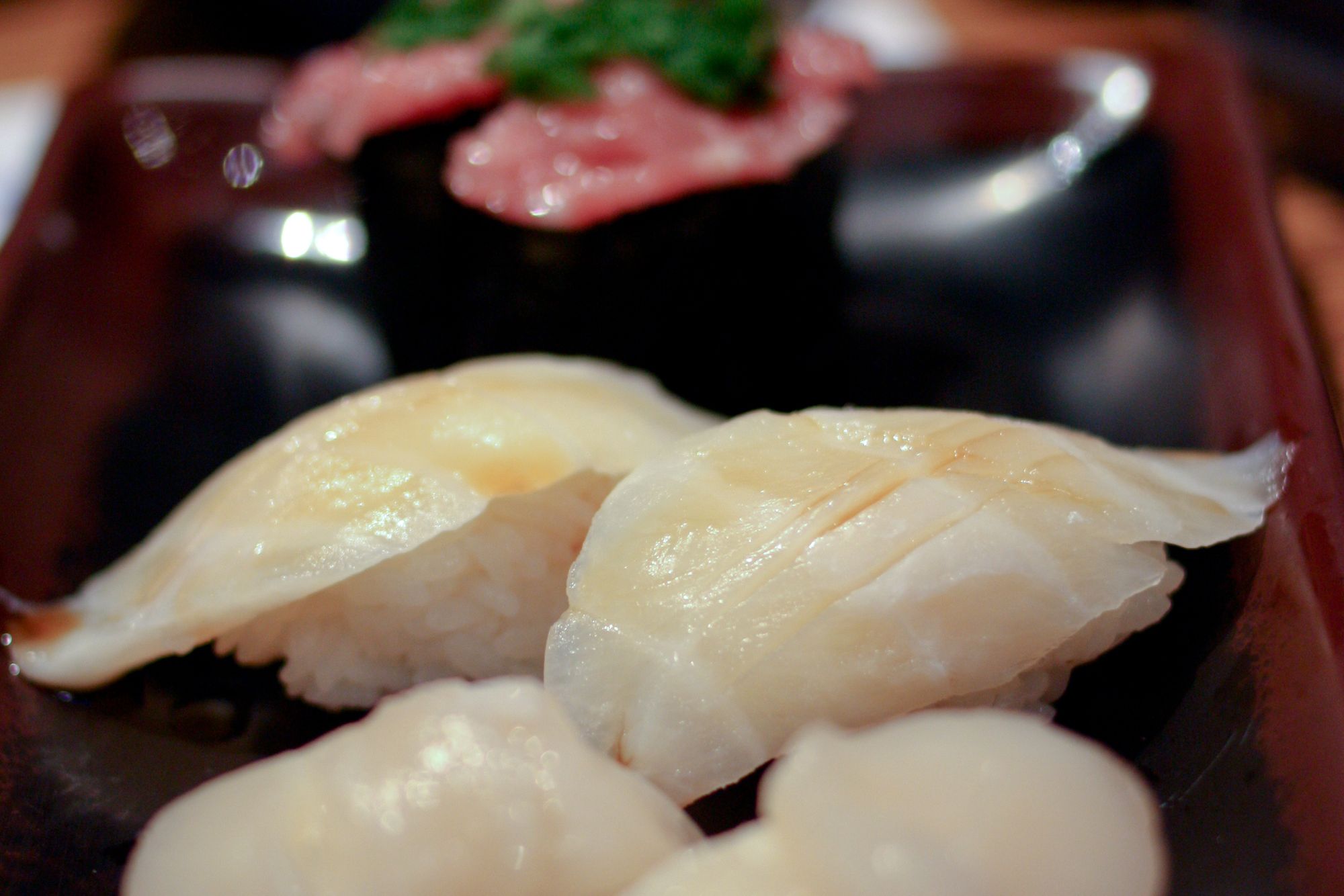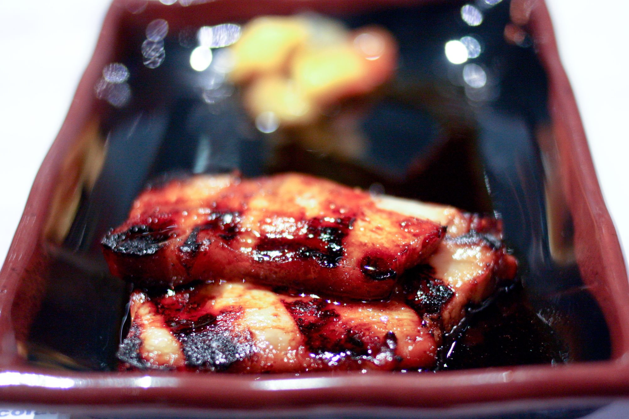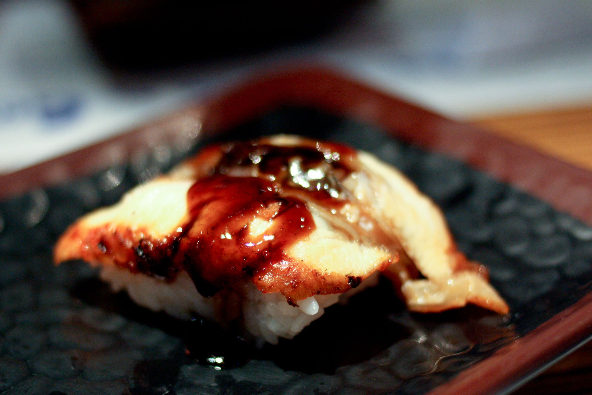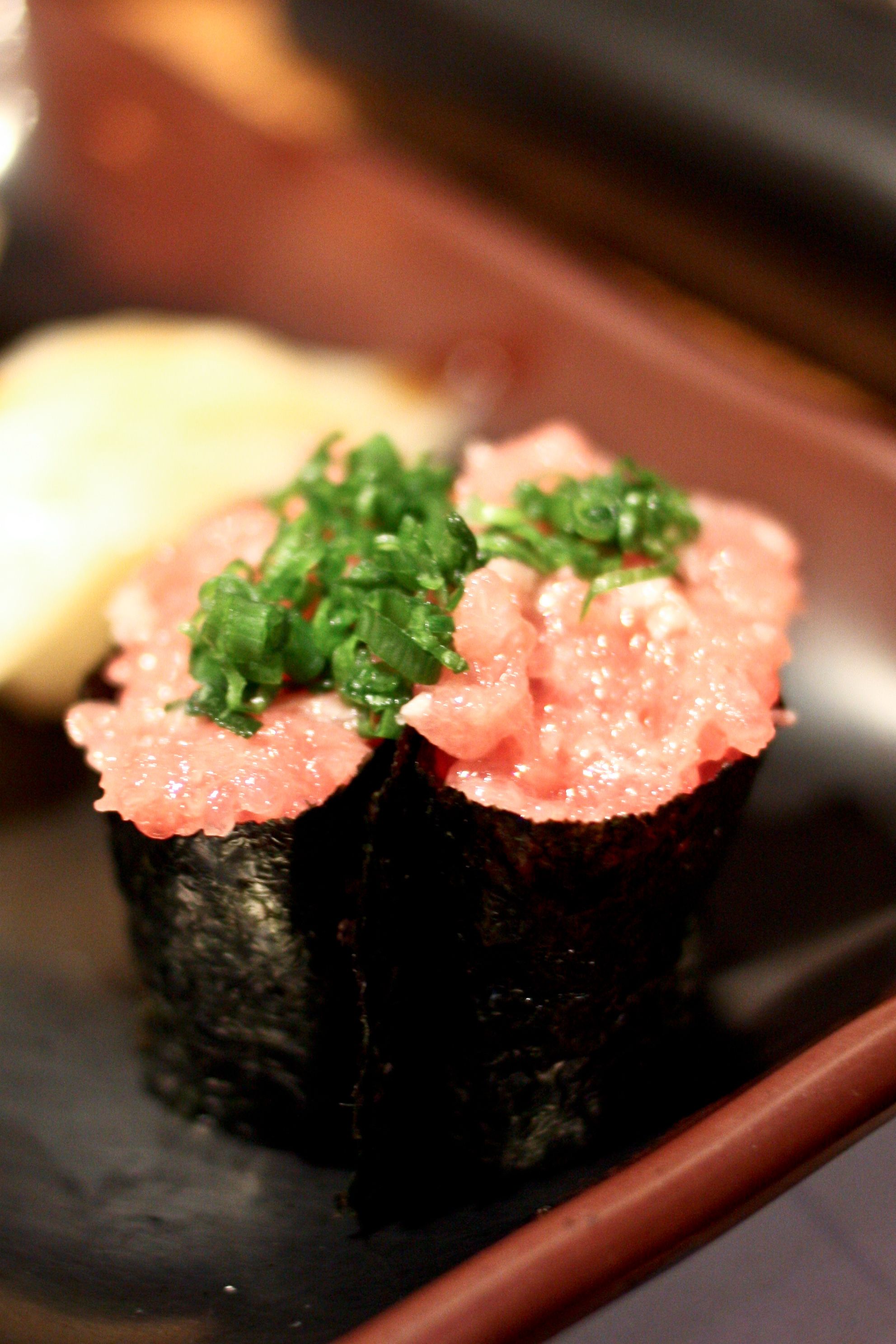 Pork Belly (Braised and grilled served with mango salsa), Super White Tuna (Marinated with sweet miso)Abaebi Nigiri, Uni NigiriNigiri (Salmon, Hamachi, Saba, Super White Tuna and Maguro), Saba NigiriSuper White Tuna and Maguro NigiriYum Yum Scallop Nigiri, Cold Tofu Appetizer (Housemade tofu with 3 condiments)Shrimp Tempura, Negitoro NigiriJapanese Snapper and Hotate NigiriVolcano Roll, Snow Crab Meat Nigiri, Ikura Nigiri, Unagi NigiriCajun Albacore Nigiri, Tako NigiriWhite Clam Nigiri, Bincho (Albacore) Nigiri, Hamachi NigiriChocolate Mousse, Green Tea Cake