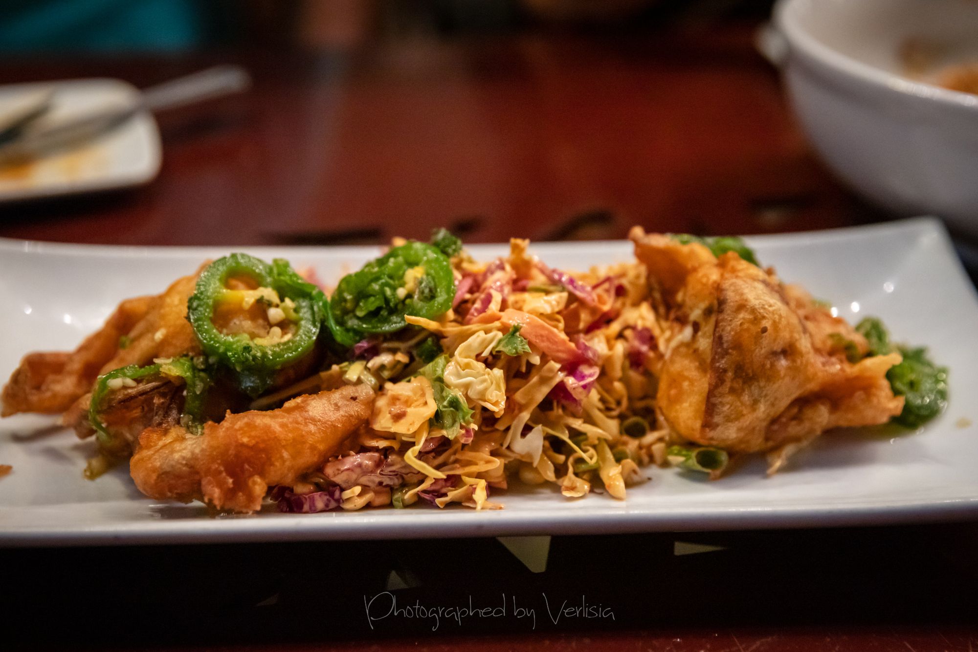 Beer, Salt and Pepper Fried Soft Shell Crab (jalapenos, scallions, grilled corn slaw with chipotle aioli)Mexican Style Corn on the cob (chili lime spice, aged monterey jack cheese, crispy onion, cilantrio, and aioli)