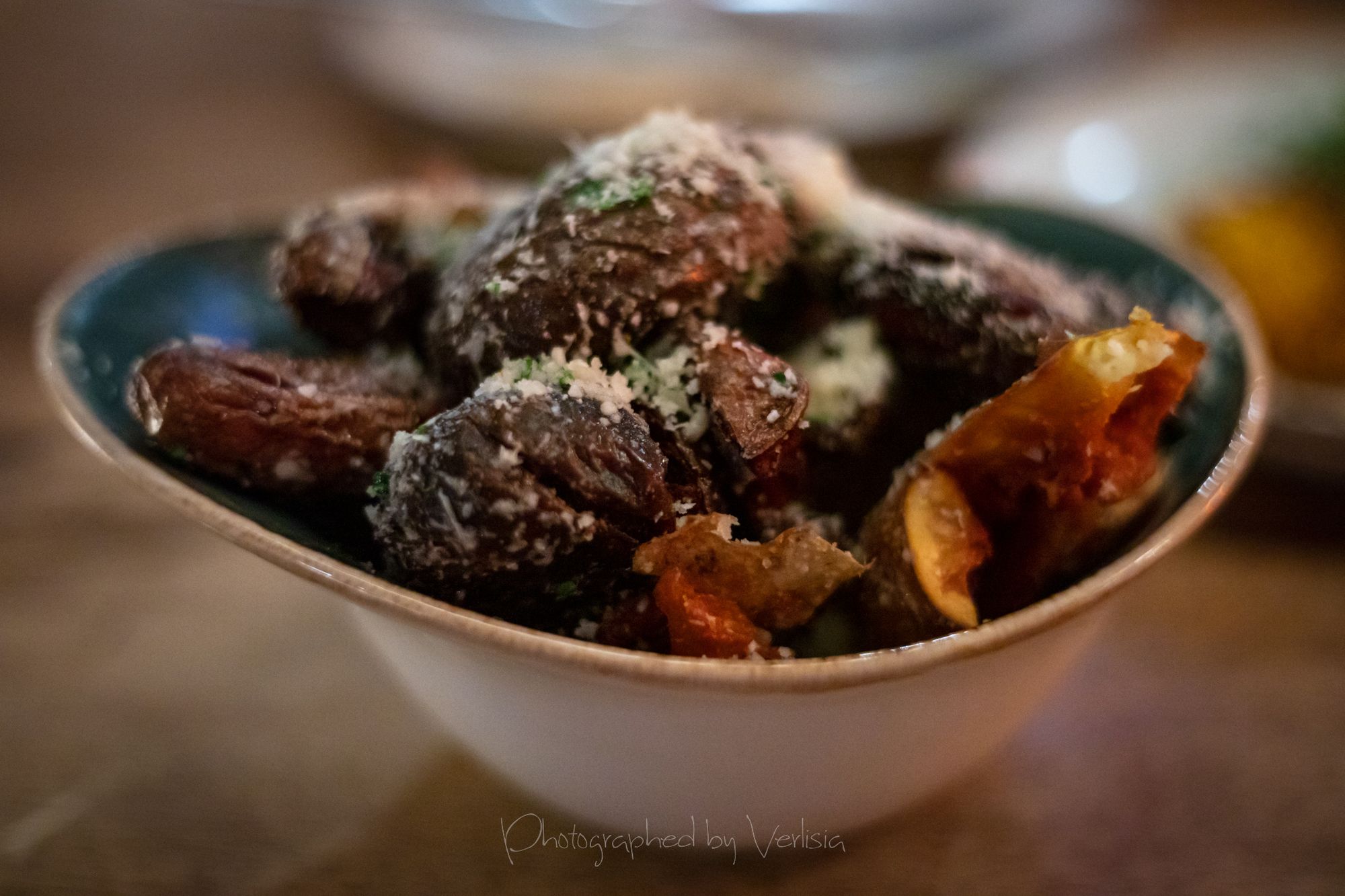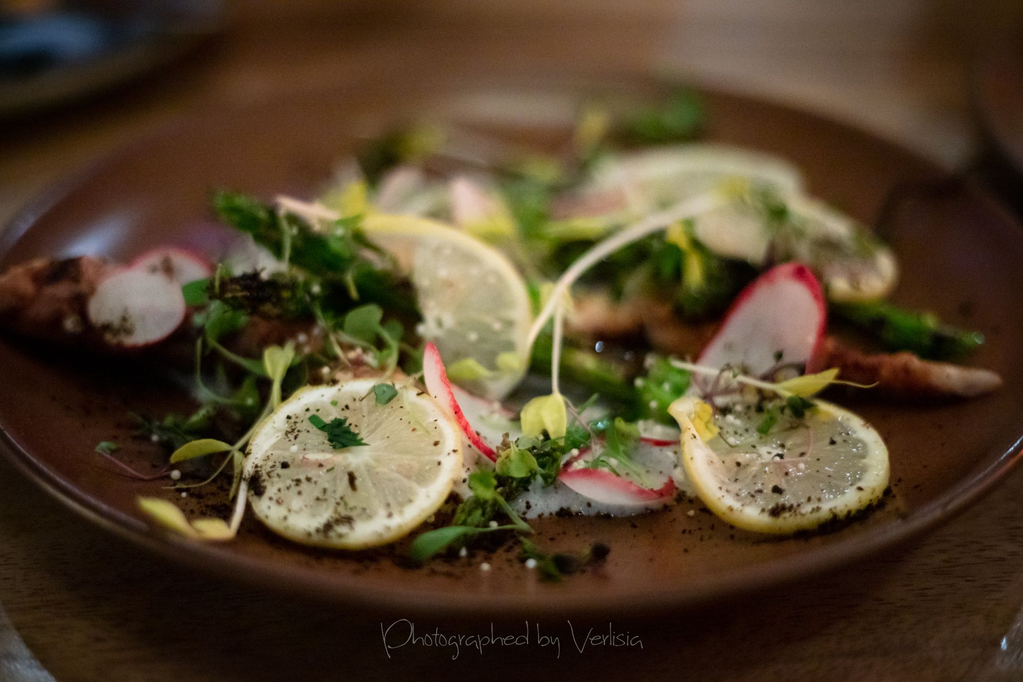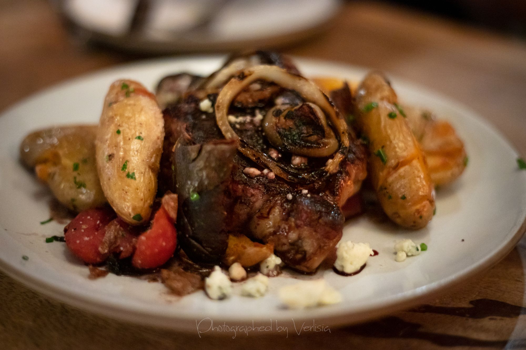 Cosmo, Charred Shishito Peppers (battarga, shoyu, lemon), Diver Scallops (celery root puree, dill, grapefruit)Grilled Octopus (radish, asparagus, puffed rice, charred serrano yogurt), Chive Flat Bread, Parmesan Fingerling PotatoesVineland Street Corn, Alaskan Halibut (porcini dust, tempura trumpets, wild mushroom bordelaise), Old FashionedBroccolini, NY Steak (bacon confit onions, moody blue cheese, grape gastrique, fingerling potatoes)Strawberry Shortcake, Serbet and GelatoIrish Coffee, Wine