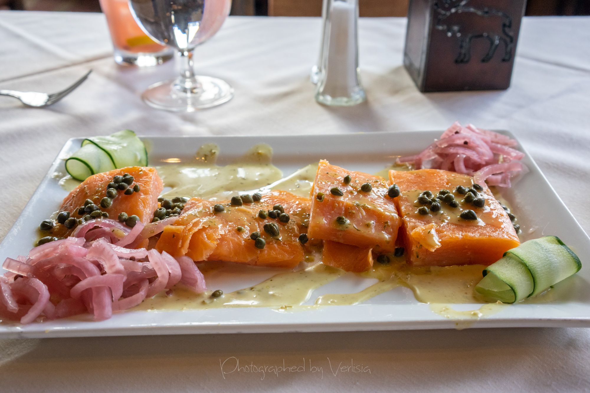 Huckleberru Lemonade, Smoked Salmon Platter (Dill-Caper Spread, English Cucumber, Pickled Red Onions, Lemon Zest, Crostini)
