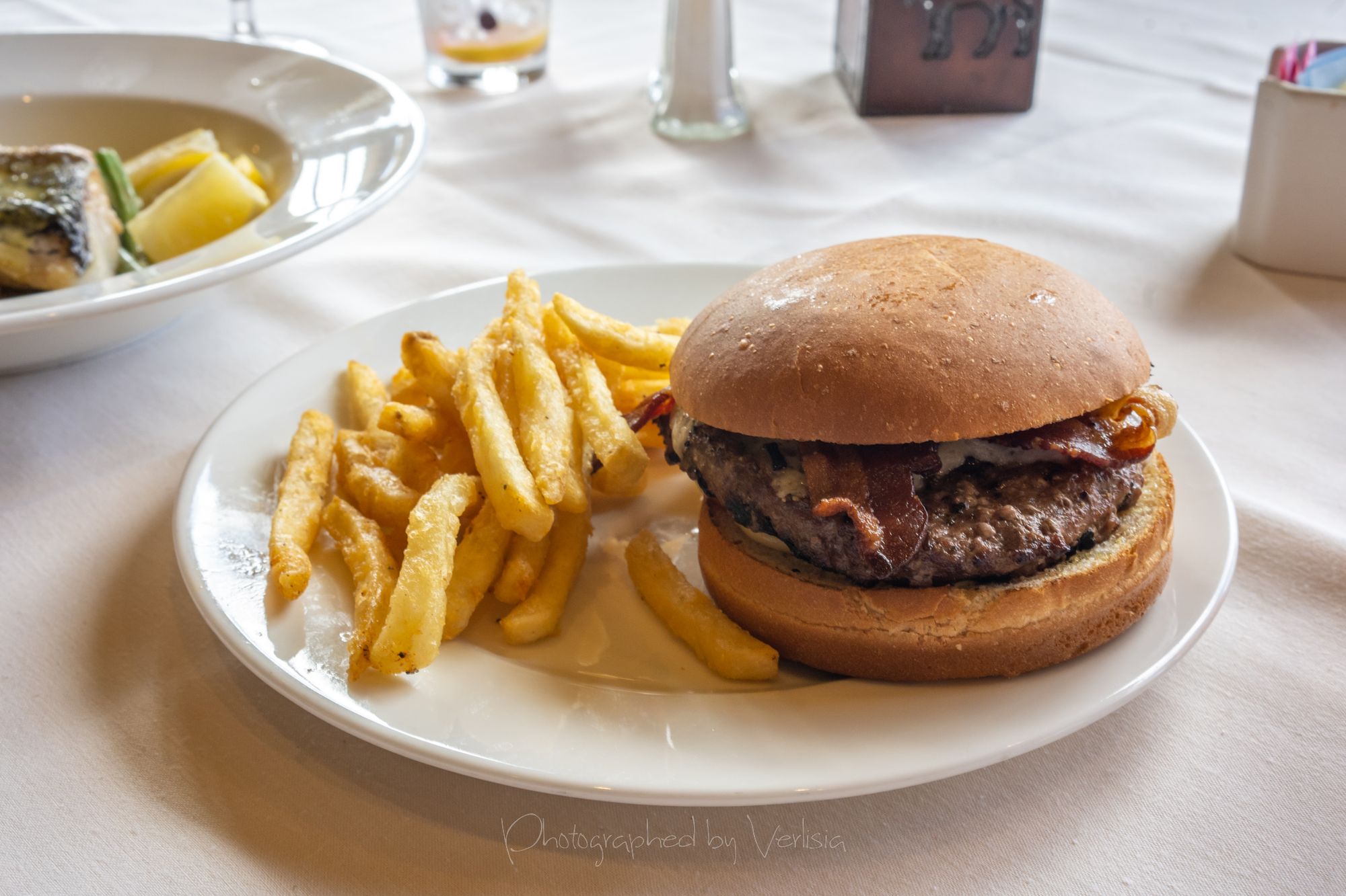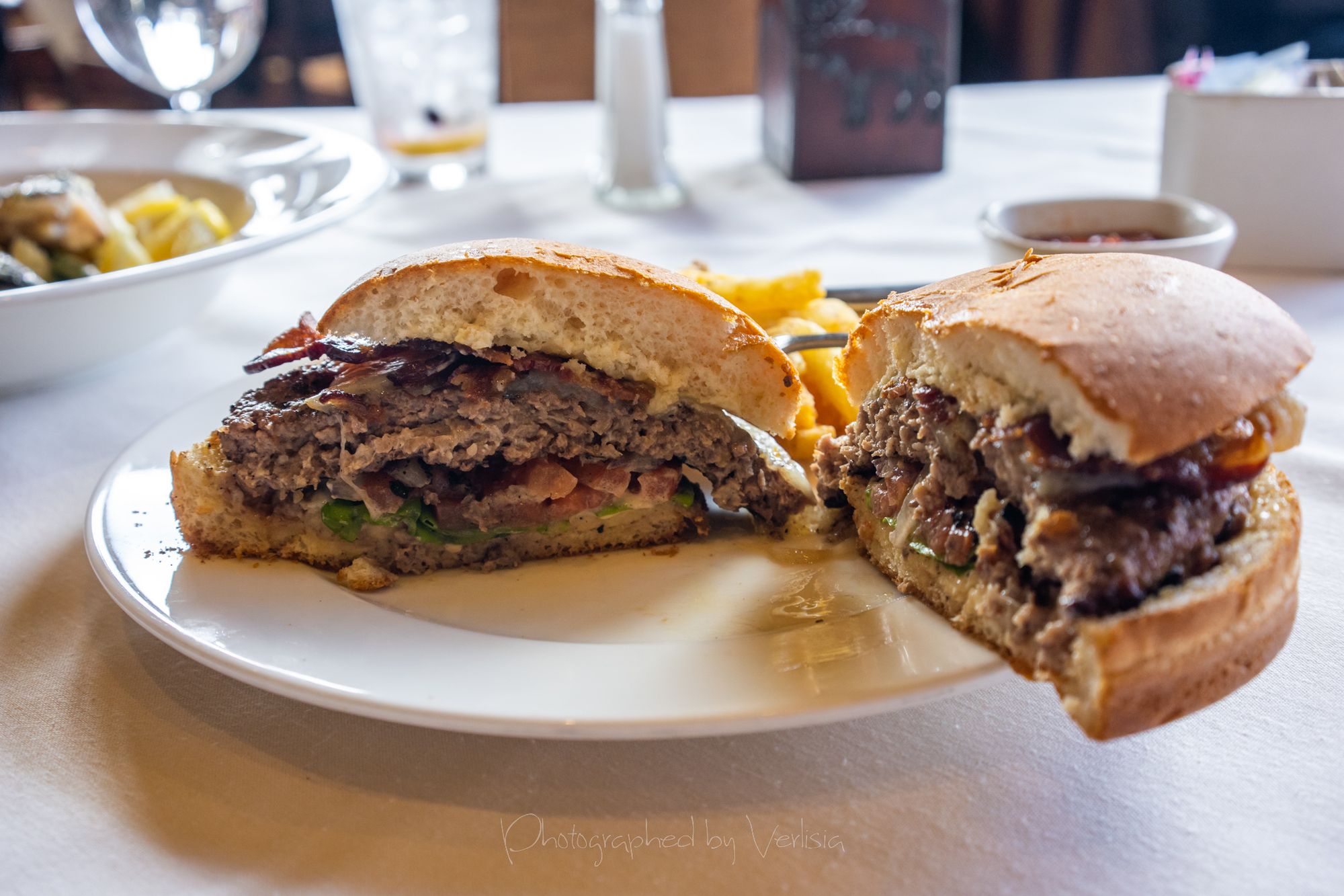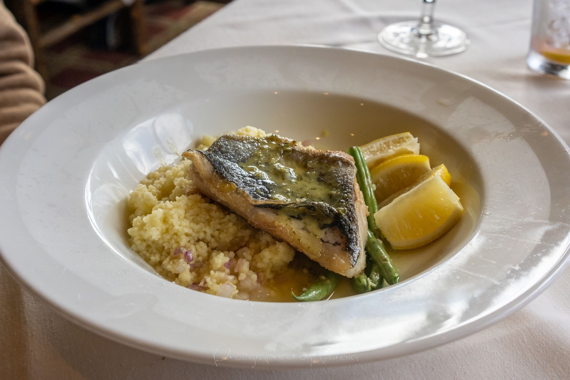 Seared Black Cod (Toasted Almond Couscous Pilaf, French Green Beans, Lemon-Dill Vinaigrette)Gunsight Notch Burger (1/2lb Beef patty, Havarti Cheese, Dikon Aioli, Applewood Smoked Bacon, Lettuce, Tomato, Onion on Brioche)