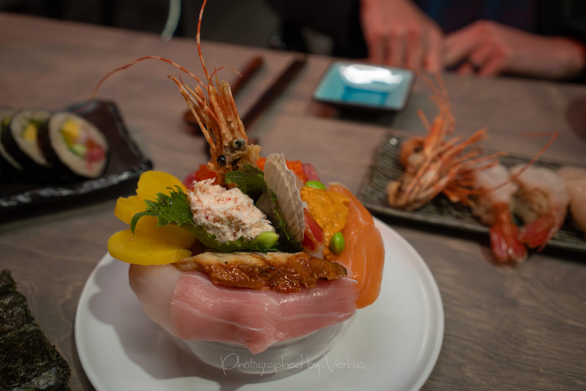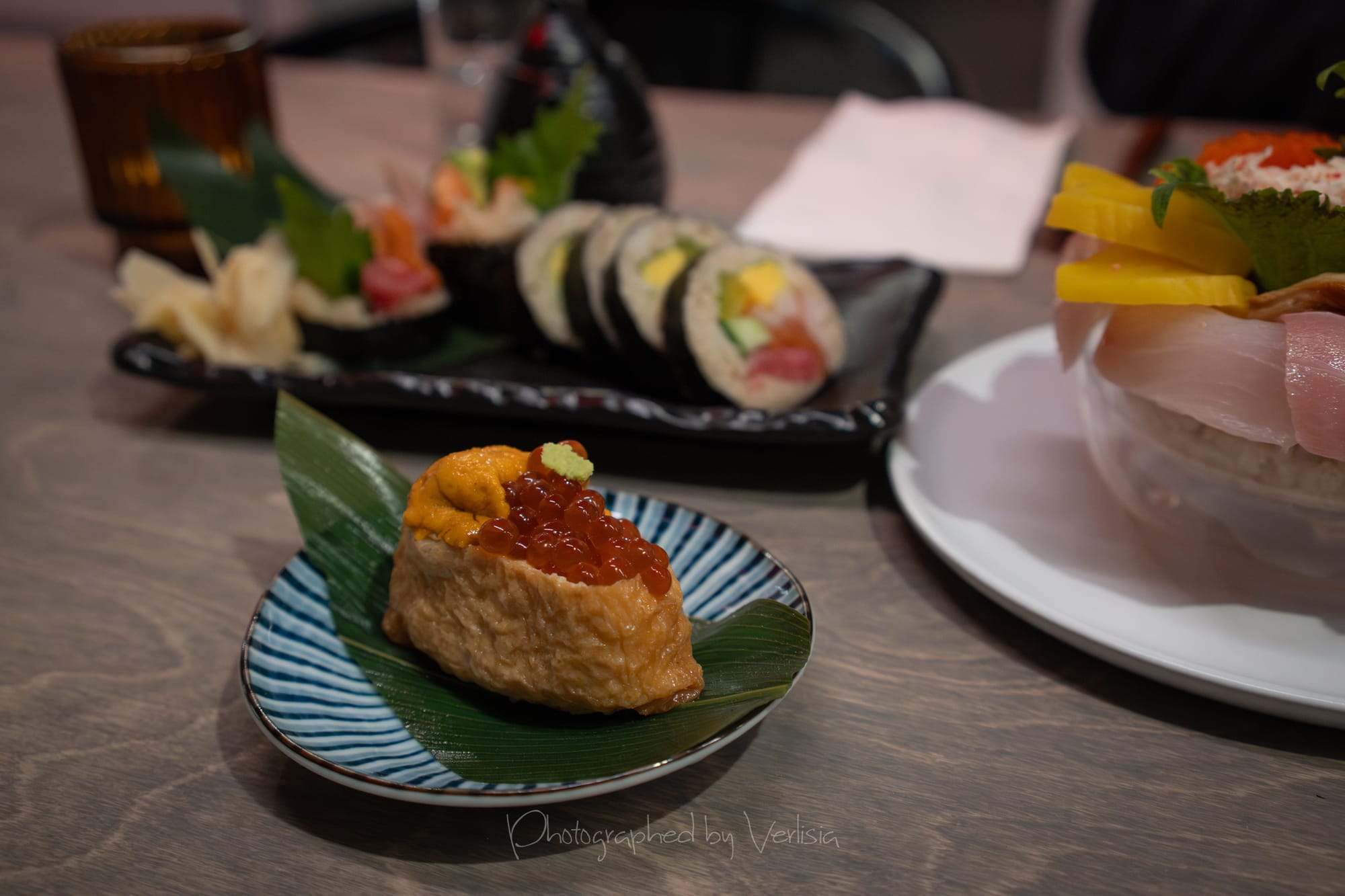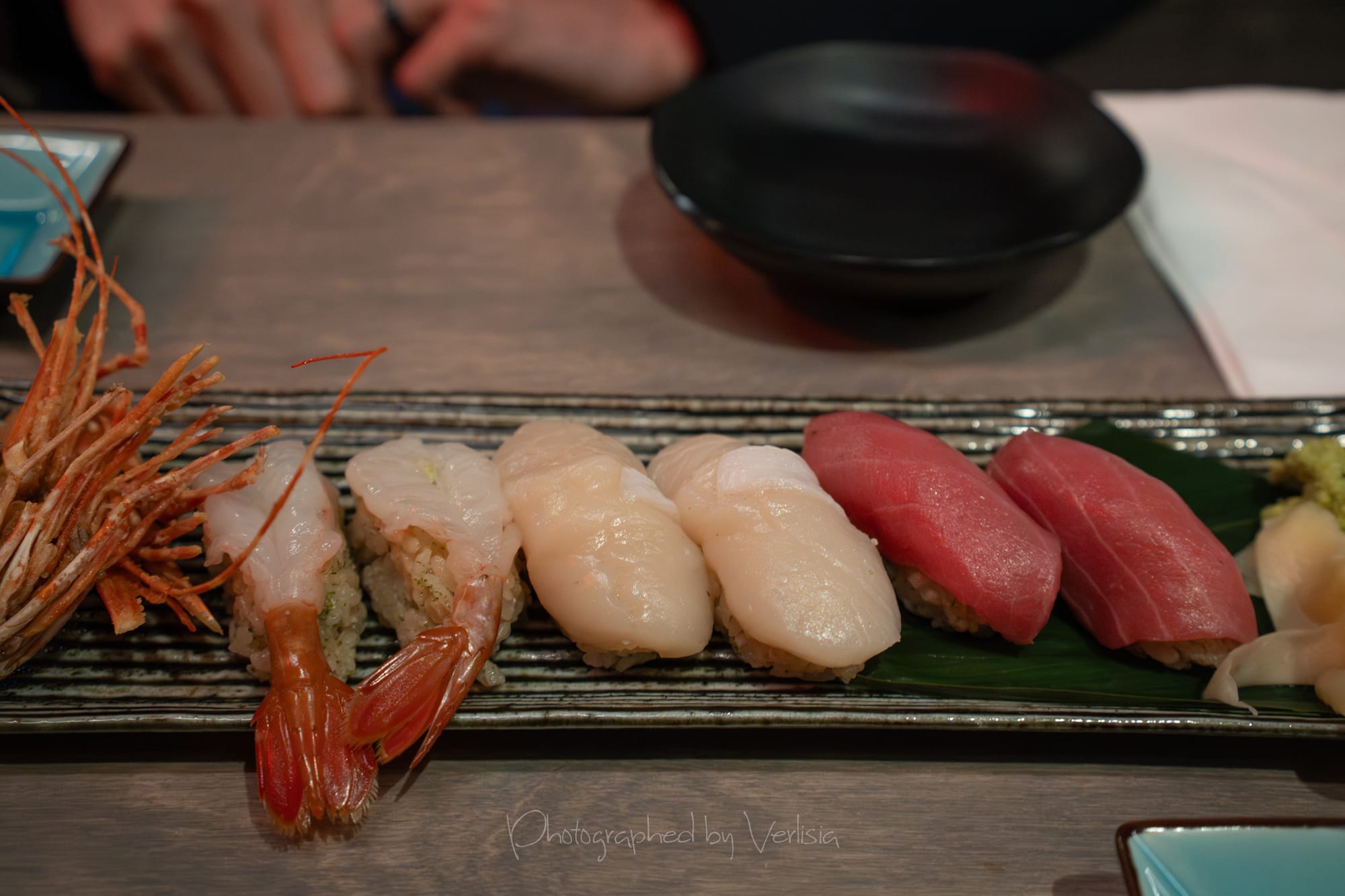 Nigiri - Ama-Ebi, Akami, Hokkaio Hotate; Uni Ikura Inari; Sake