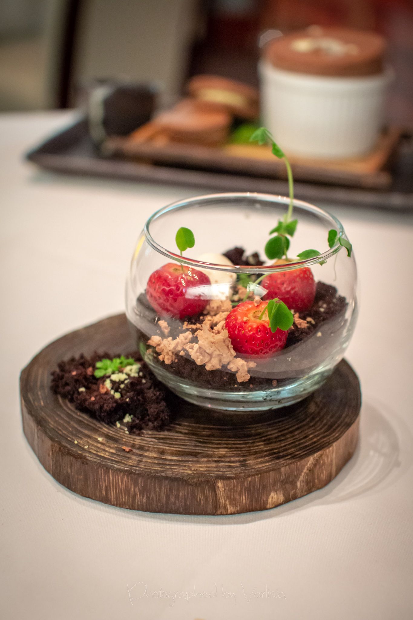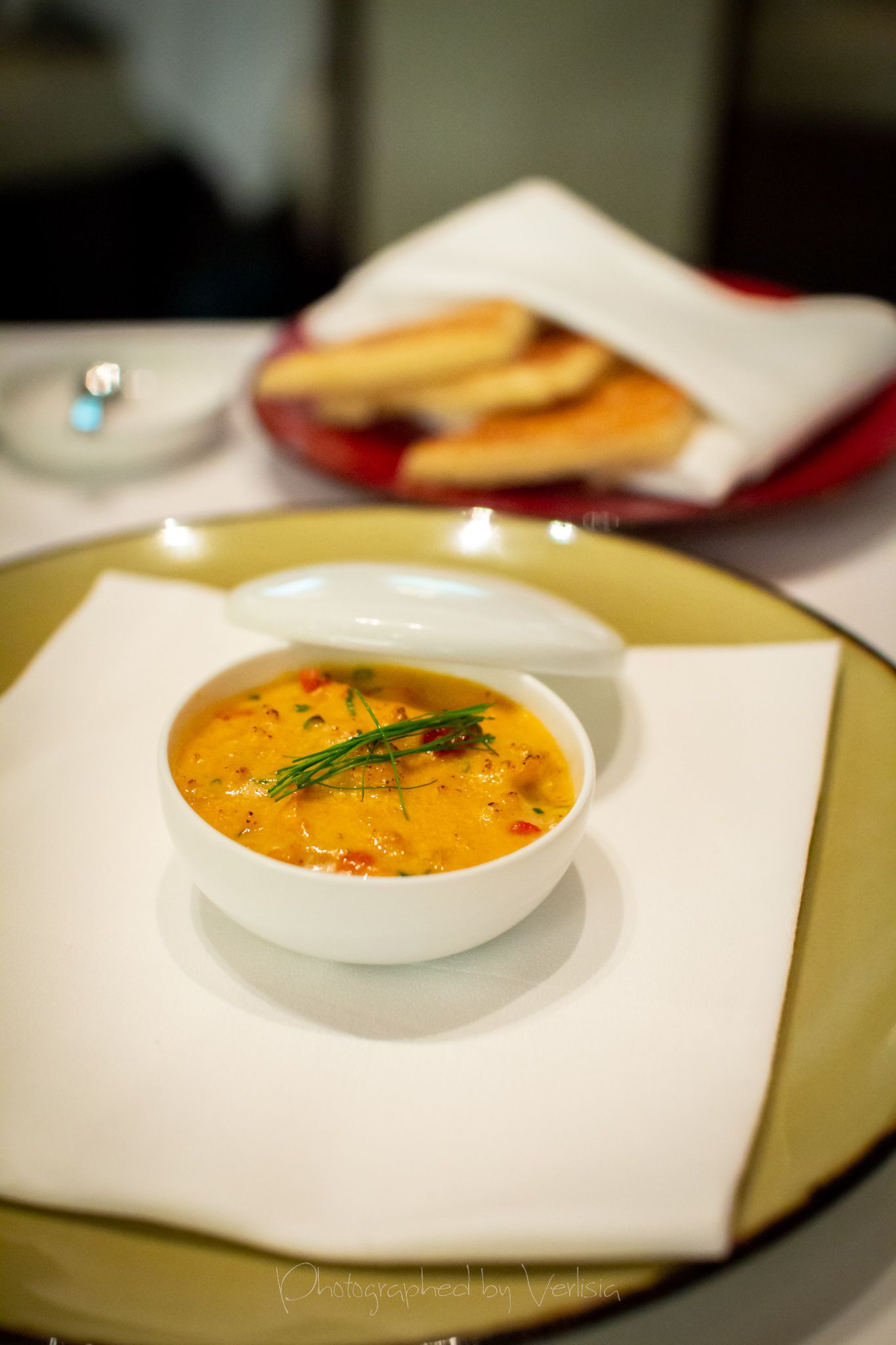 Amuse bouche (Melon juice with lime), The Sea's Fried Clam Chowder (fingerling potato, bacon, carrots, celery), ChampagneCroissant, Wild Santa Barbara Sea Urchin (tomato, chive, champagne), Butter Poached Wild Maine Lobster (kabocha squash, heirloom beets, spinach, horseradish), Seared Wild Hawaii Big Eye Tuna (cranberry beans, shellsh, smoked paprika, tomato, arugula)Souffle (Chocolate, macarons, peppermint), Chocolate CakeParting Gifts, Strawberry Patch (Strawberry mousse, black velvet "soil", vanilla chantilly, chocolate "rocks"), Cherry Flavored Cotton Candy