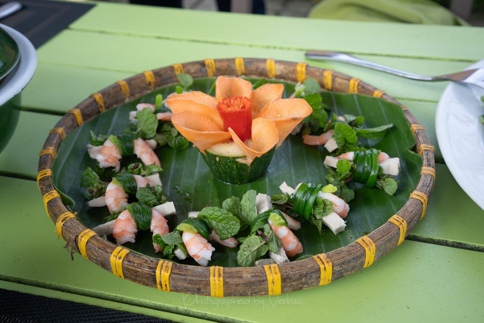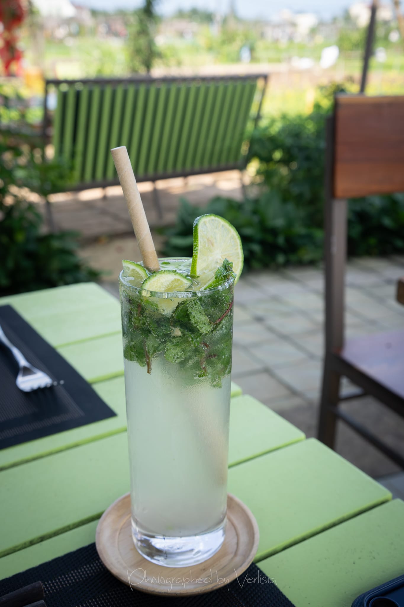 Cocktail - Mojito; Tam Huu (Tra Que's Traditional Snack) - boiled pork, shrimp, and fresh thai basil, tied together by green onion