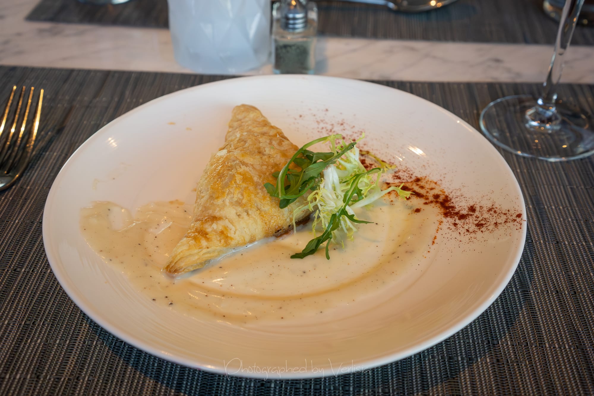 Black Forest Ham, Gruyere Cheese, Puff Pastry (Dijon bechamel); Mimosa