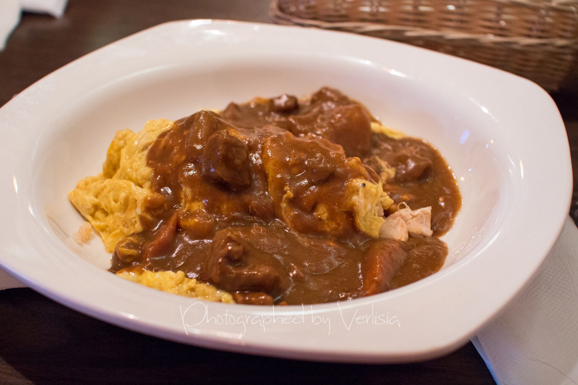 Omelet Rice with Curry Sauce, Ginger Pork