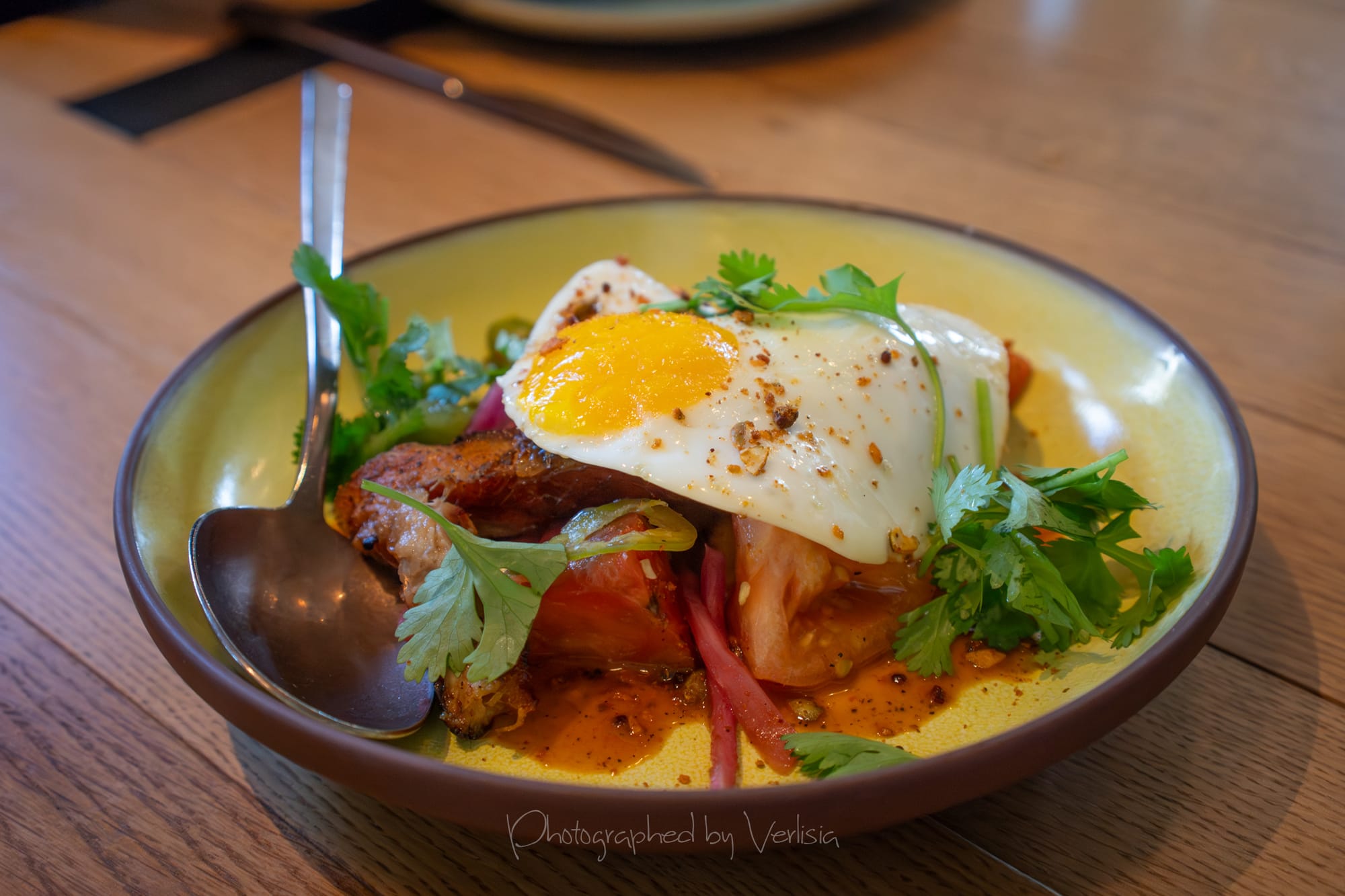 Mocktail - Sweet Tart (passionfruit, lime, fever-tree grapefruit soda), Tropic Pop (cucumber yuzu kosho cordial, pineapple, fever-free yuzu lime soda); Yucatan Pork Belly & Tomato (chili-lime vinaigrette, chili-lime pepita crunch, heirloom tomato, pickled veggies, sunny side egg )