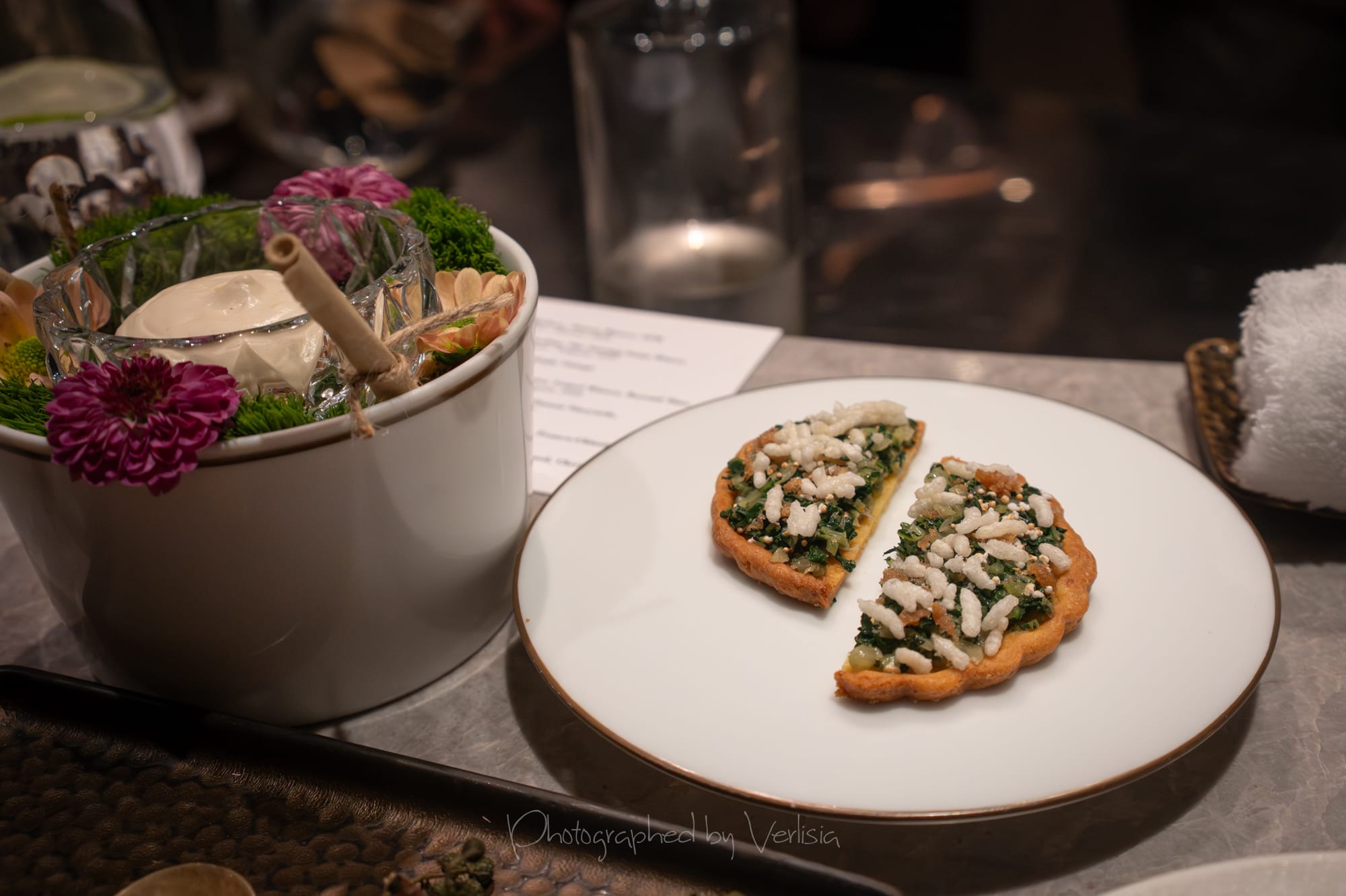 Sparkling Wine - Brut Nature, CLS, Devo MV04, Helan Mountain - Ningxia; Snacks - Savoury Selections - Red Shrimp, Salted Fish with Bok Choy