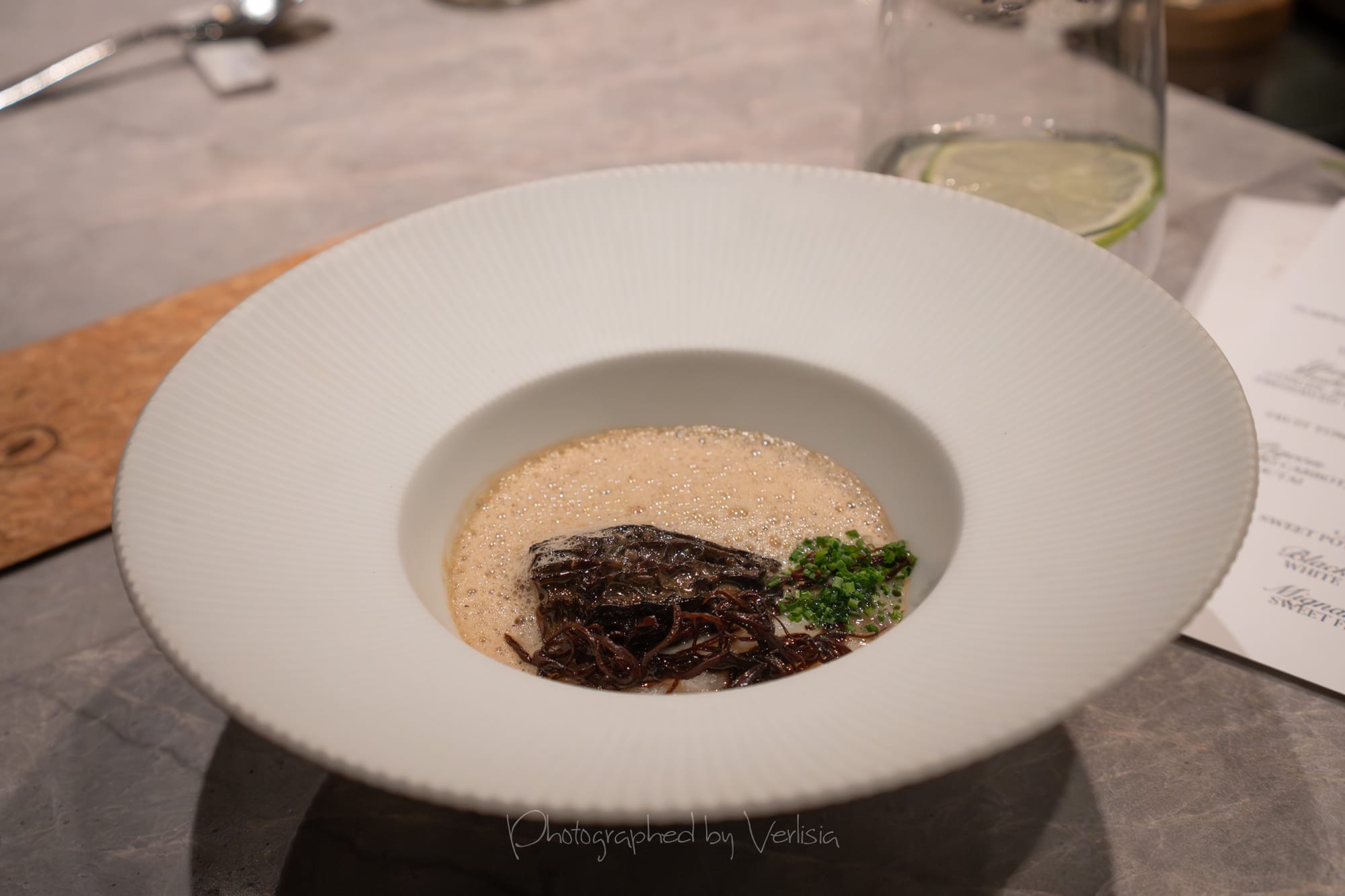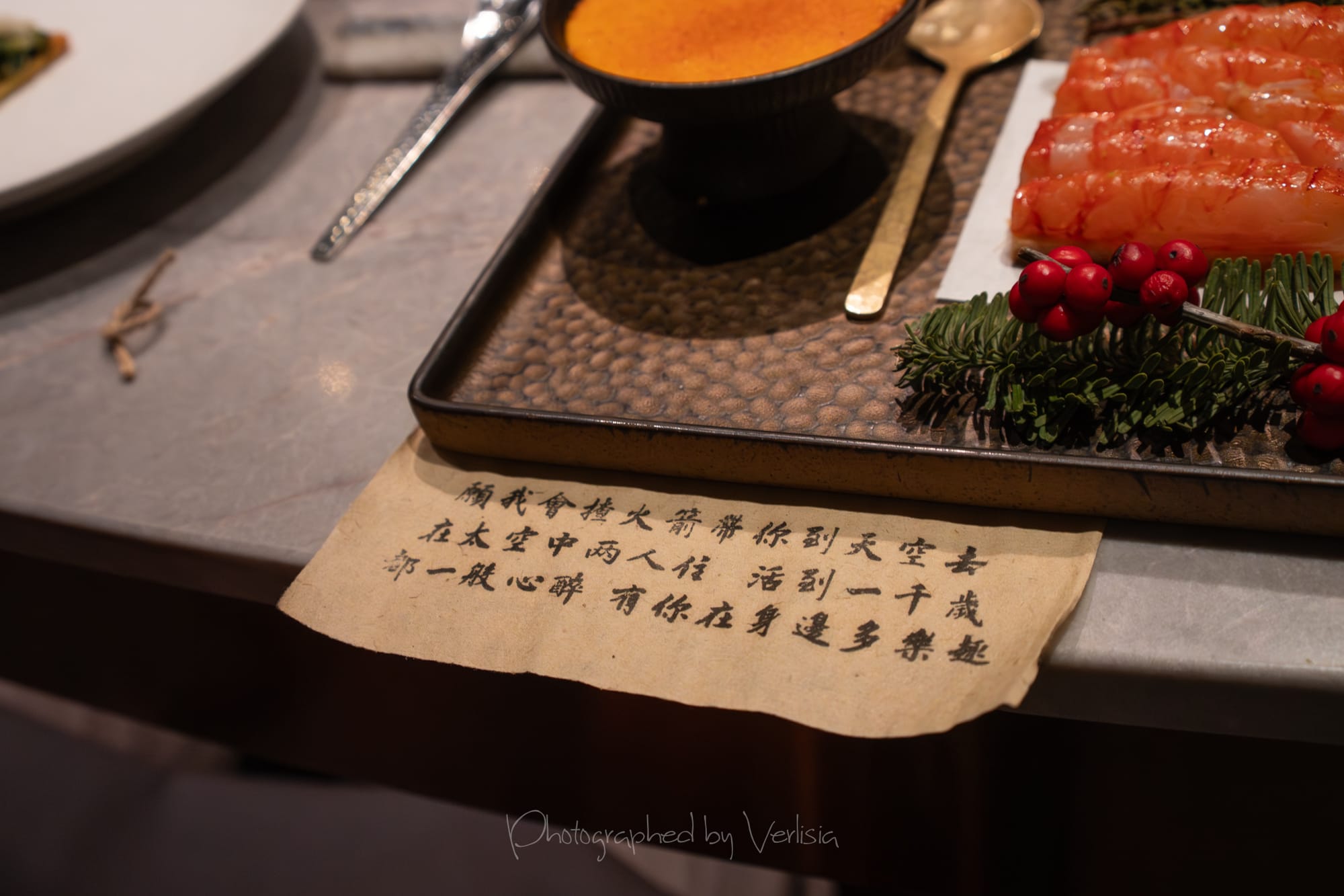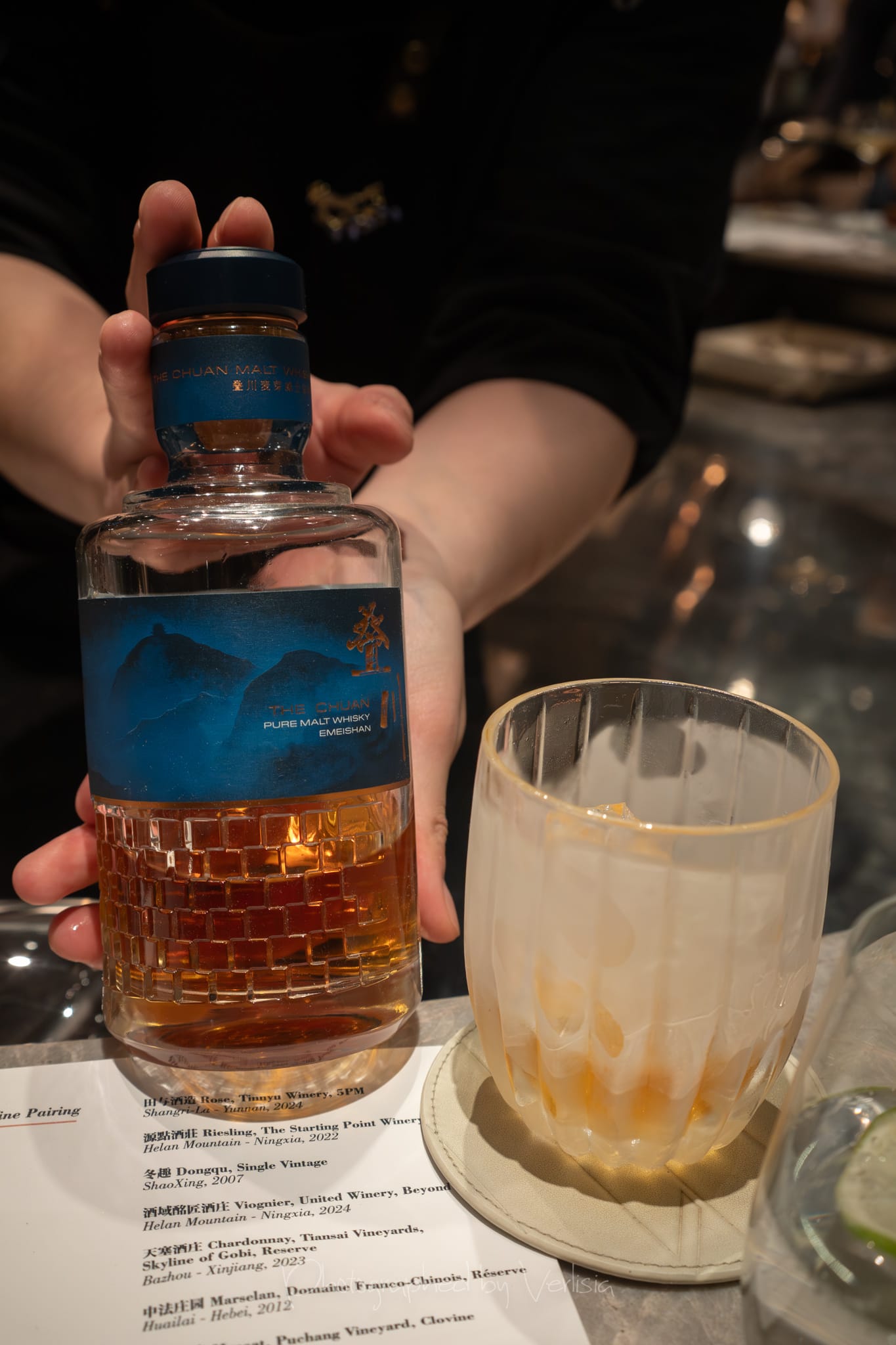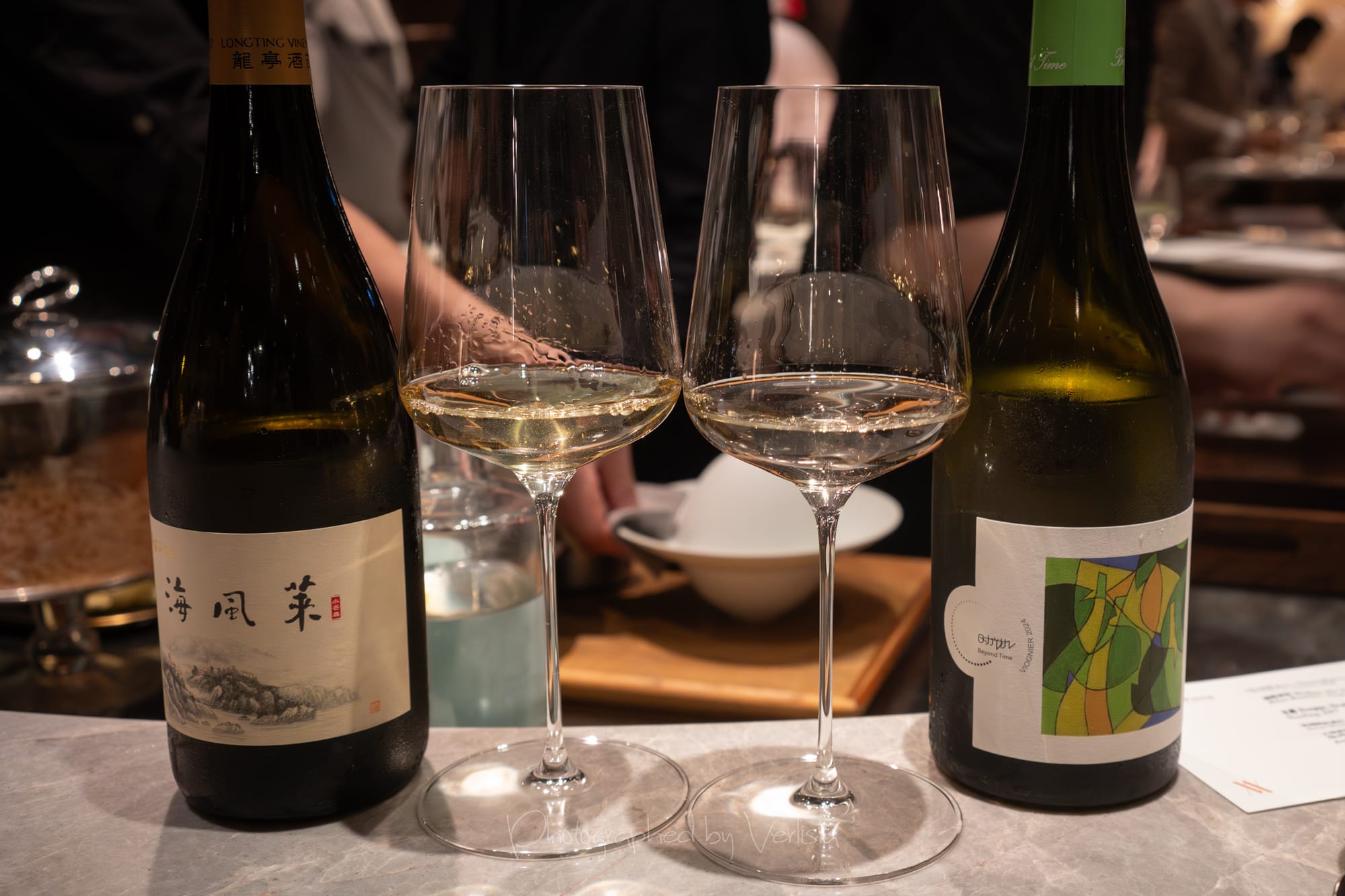 Yunnan Mushroom (Congee, 20 Years Preserved Turnip); Supplement Course - Fish Maw (Oscietra Caviar, Quinoa); Wine Pairing - Chardonnay, Longting Vineyard, Breeze, Yantai - Shandong, 2022; Viognier, United Winery, Beyond Time, Helan Mountain - Ningxa, 2024