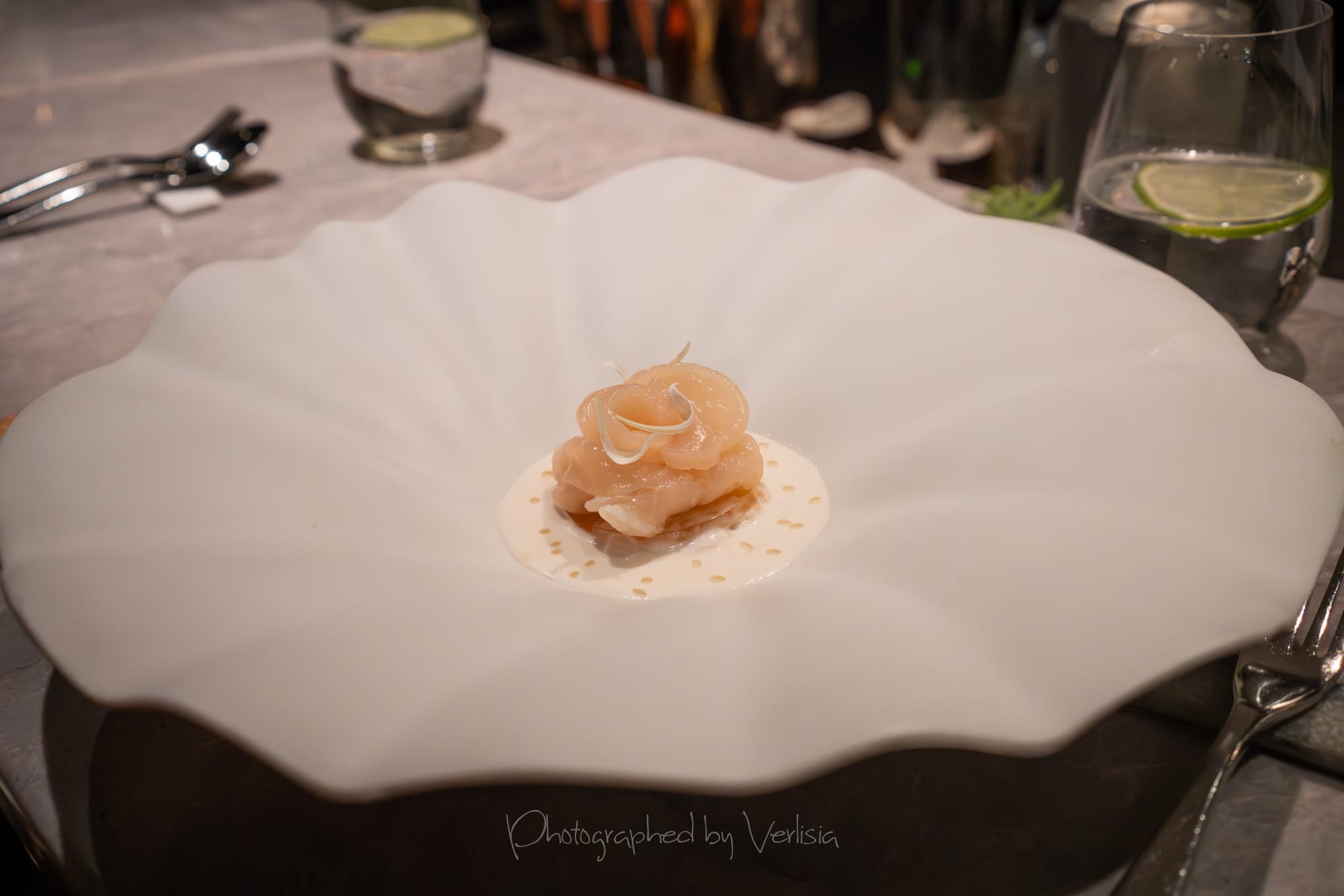 Hand-Dived Scallops (Smoked Coconut, Dried Scallop Essence); Wine Pairing - Rose, Tinnyu Winery, 5PM, Shangri-La - Yunnan, 2024