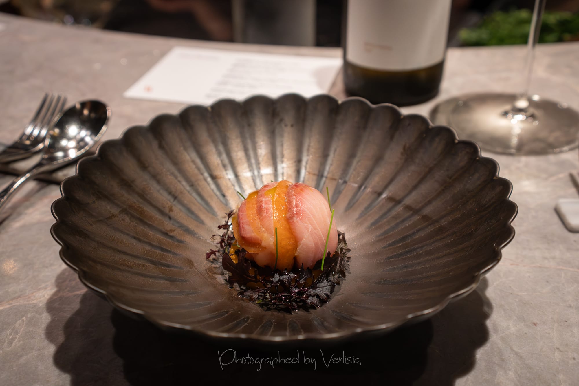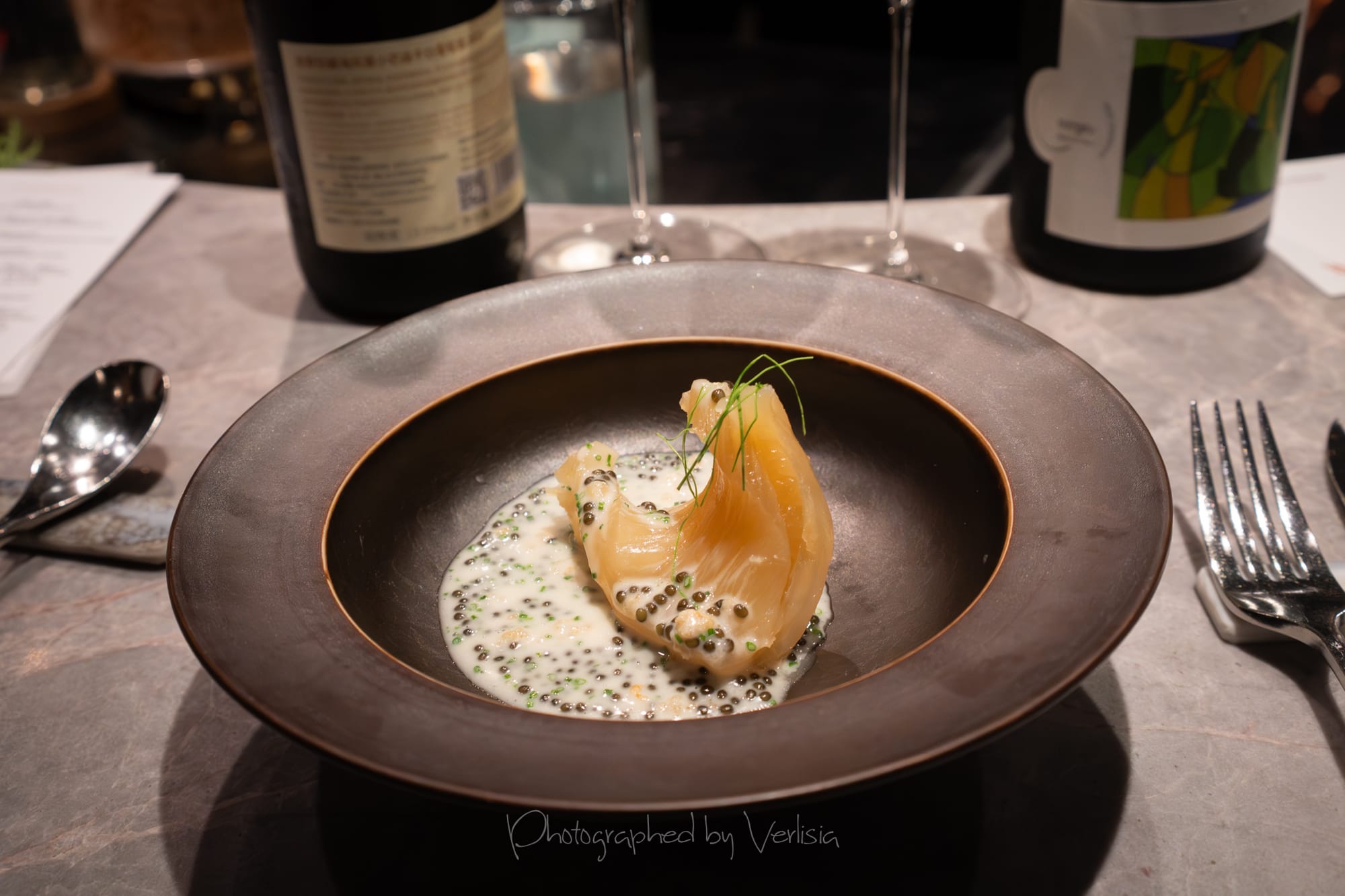 Amberjack (Pumpkin, Kristal Caviar, 2 Years Preserved Turnip); Wine Pairing - Riesling, The Starting Point Winery, Helan Mountain - Ningxia, 2022