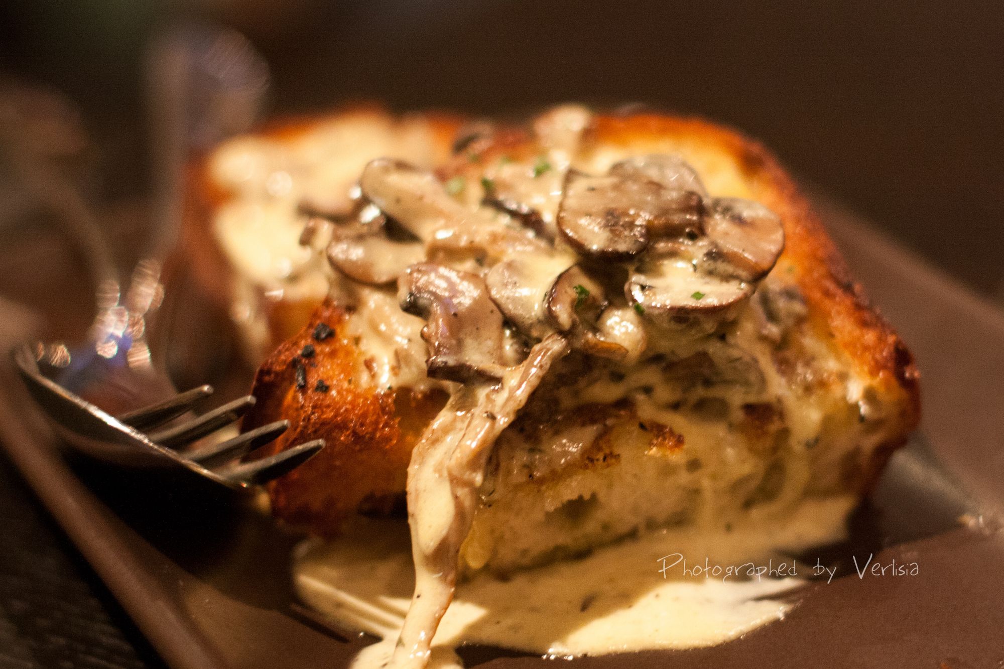 Sparkling White (Elke Vineyards, NV, Brut), Mushroom Toast (Sauteed Mushroom, Thyme, Creme Fraiche, Grilled Bread)Burrata Pizza (Tomato sauce, basil, fresh burrata cheese, oregano, arugula, olive oil, fleur de sel), Speck & Pineapple Pizza (Tomato sauce, fresh mozzarella, grilled pineaple, speck, serrano chili)