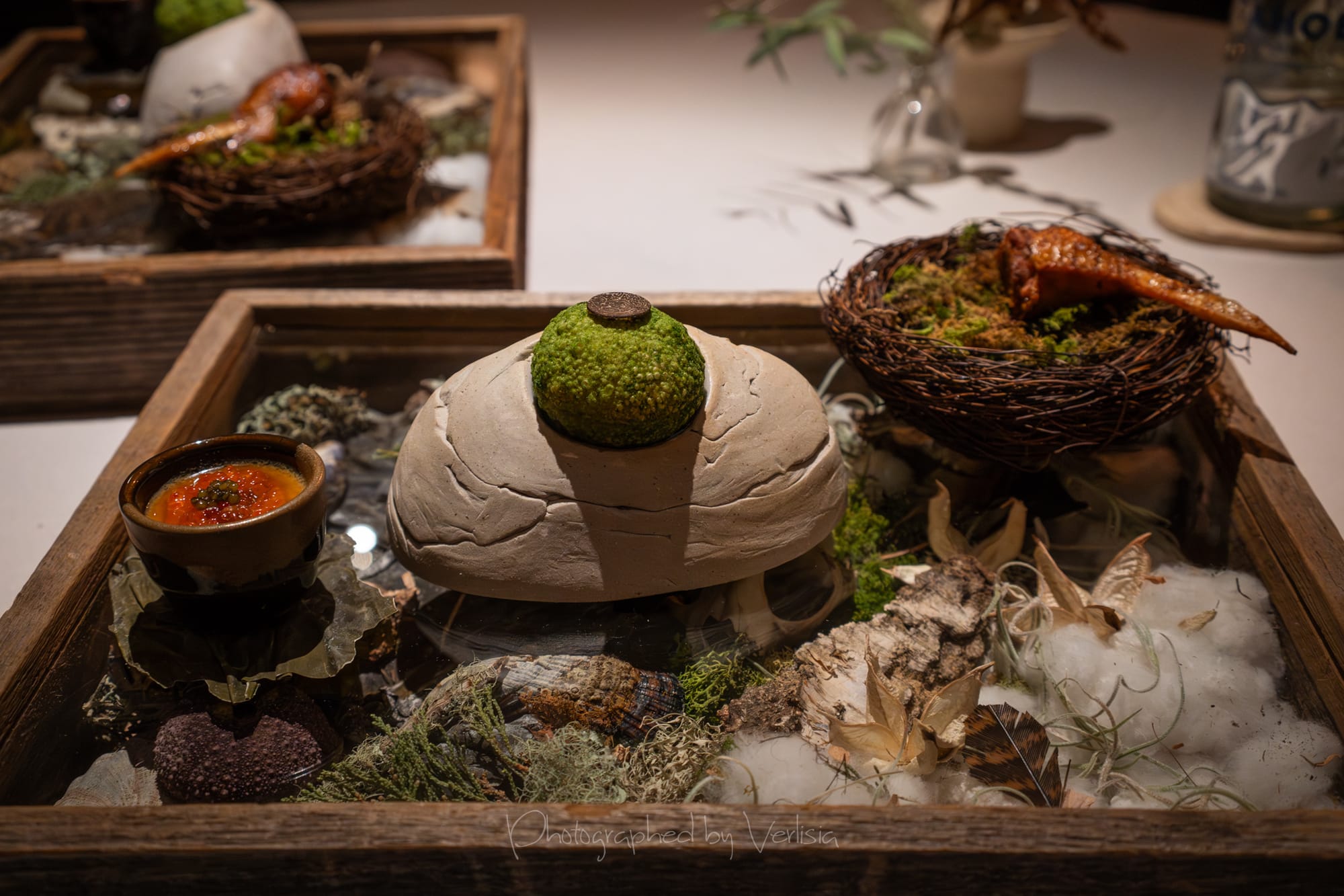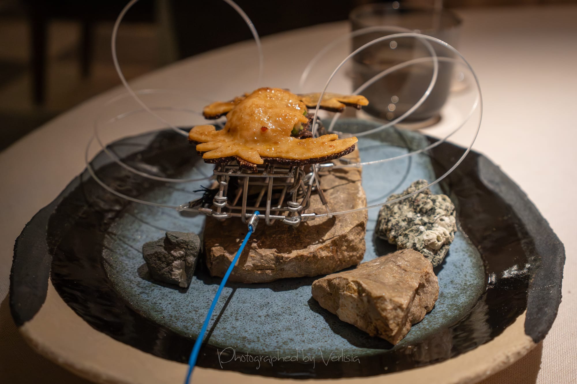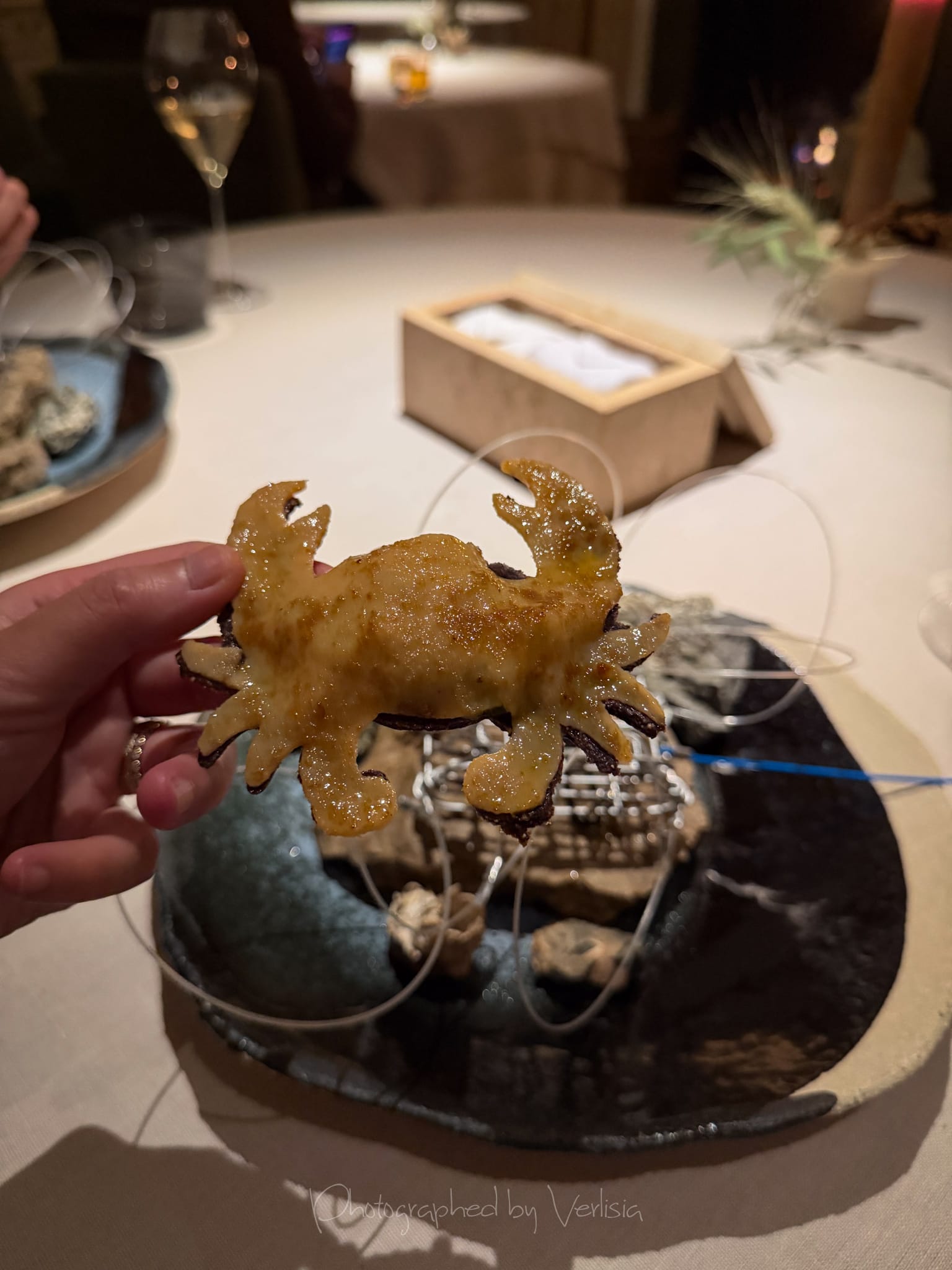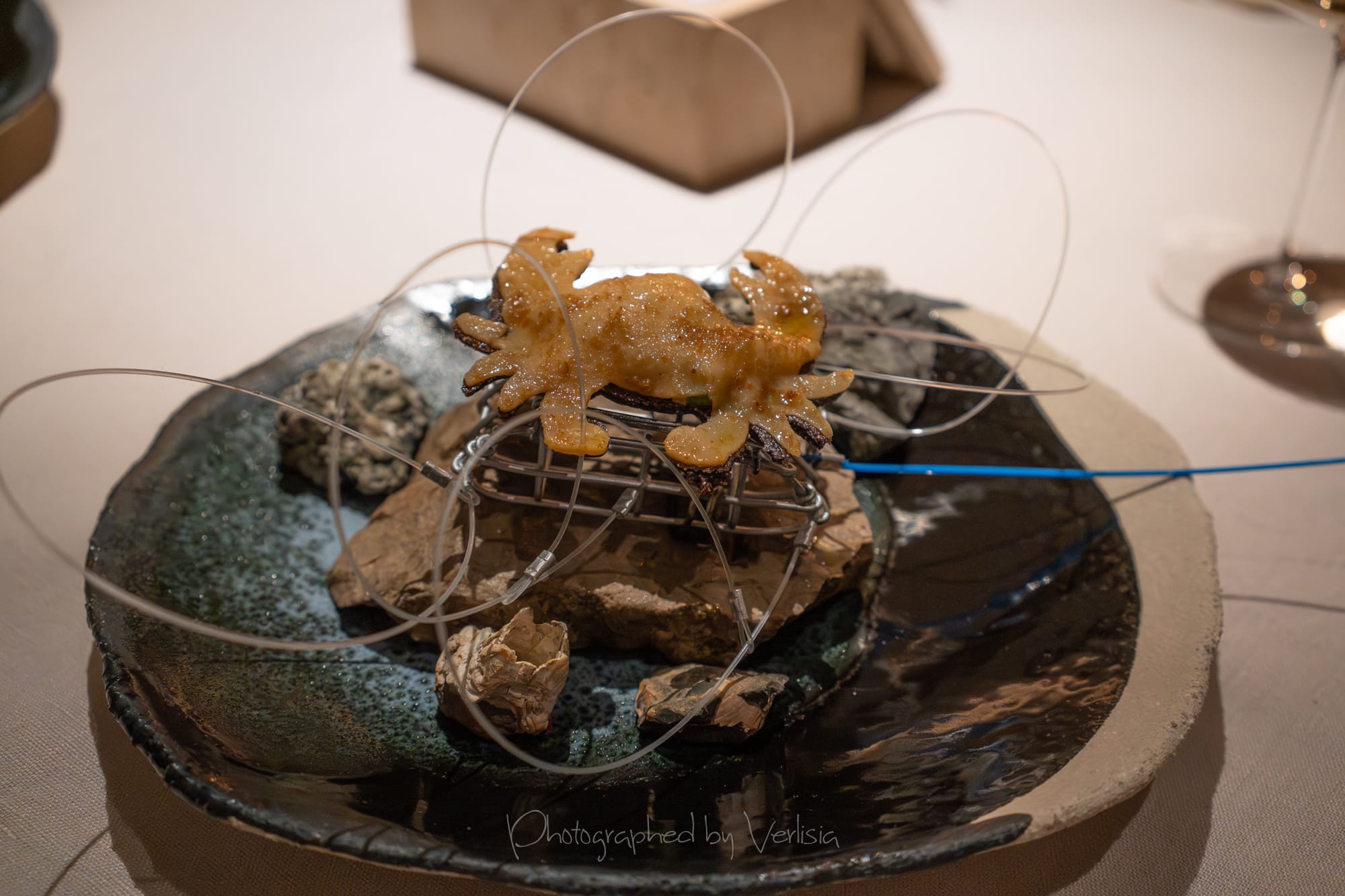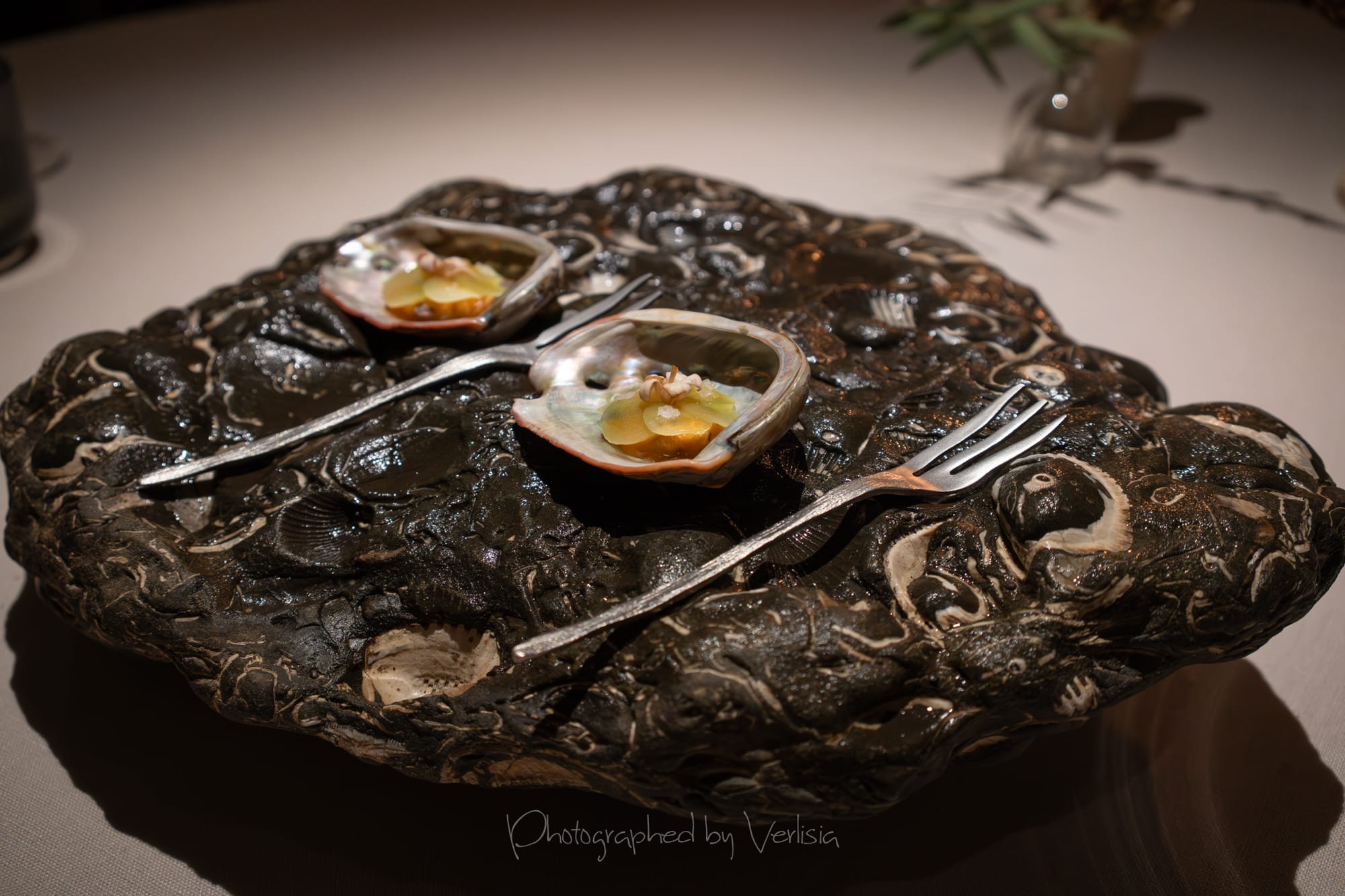 Half Moon Bay (mussel, sea urchin, papadum); Albarino, 2023 Bodegas Albamar, "Alma de Mar', Rias Baixas