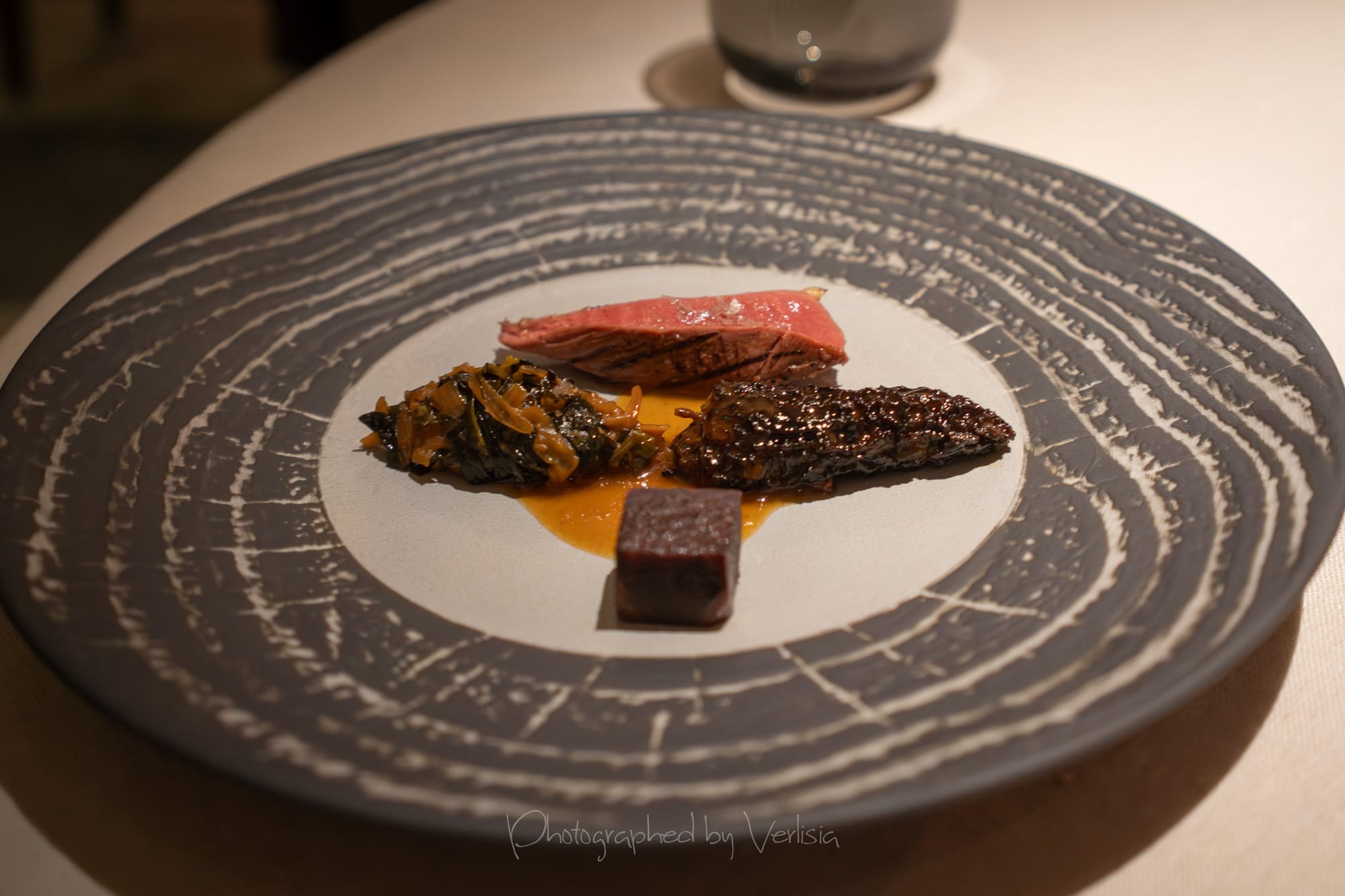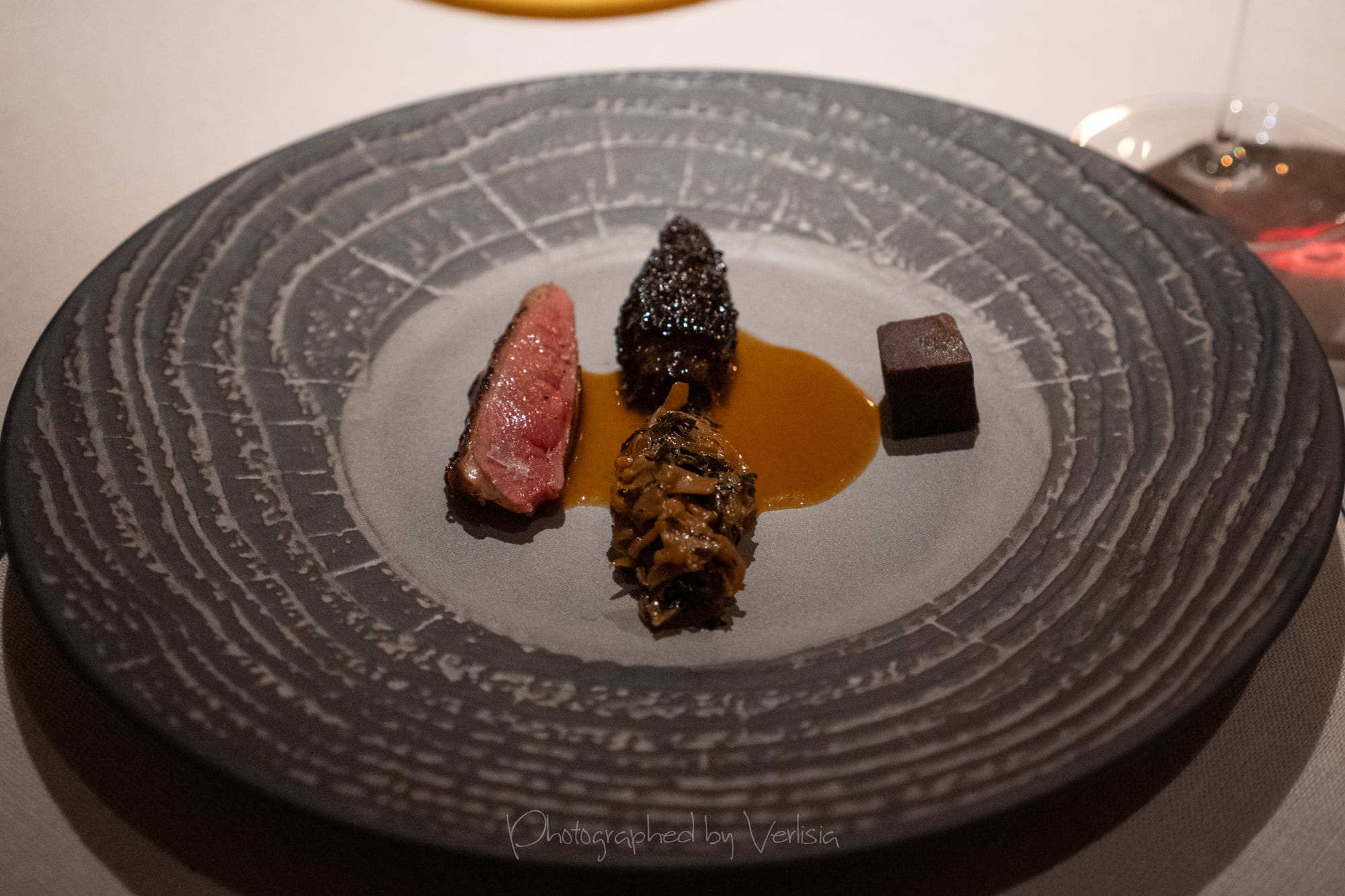 Squab (potato, spinach, morrel mushroom); Wine Pairing - Syrah, 2023 Alain Graillot, "Crozes-Hermitage", Rhone