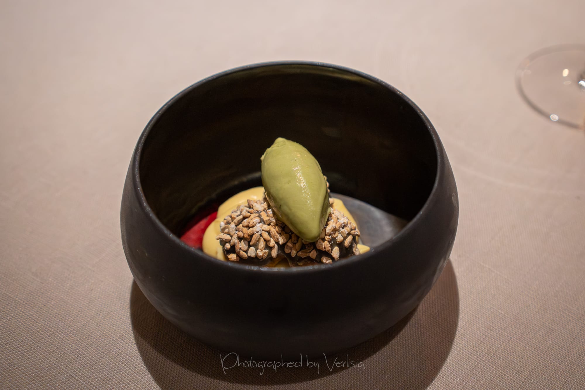 Sour Things (kiwi sorbet, elderflower); J-Town (white cream mochi); Wine Pairing - Grillo, 1988 Macro de Bartoli, "Marsala Vergine Riserva", Sicily
