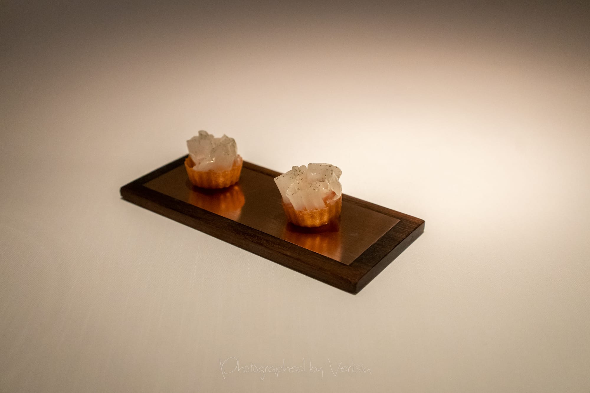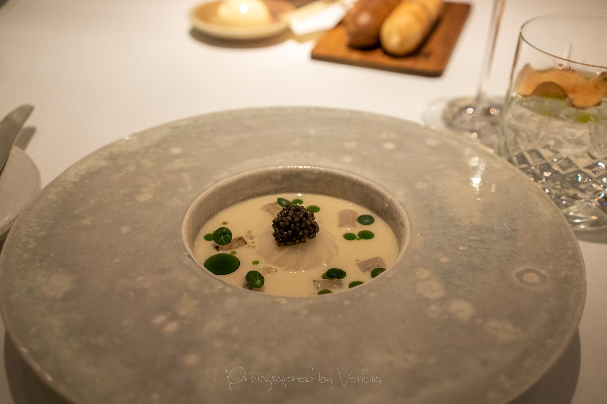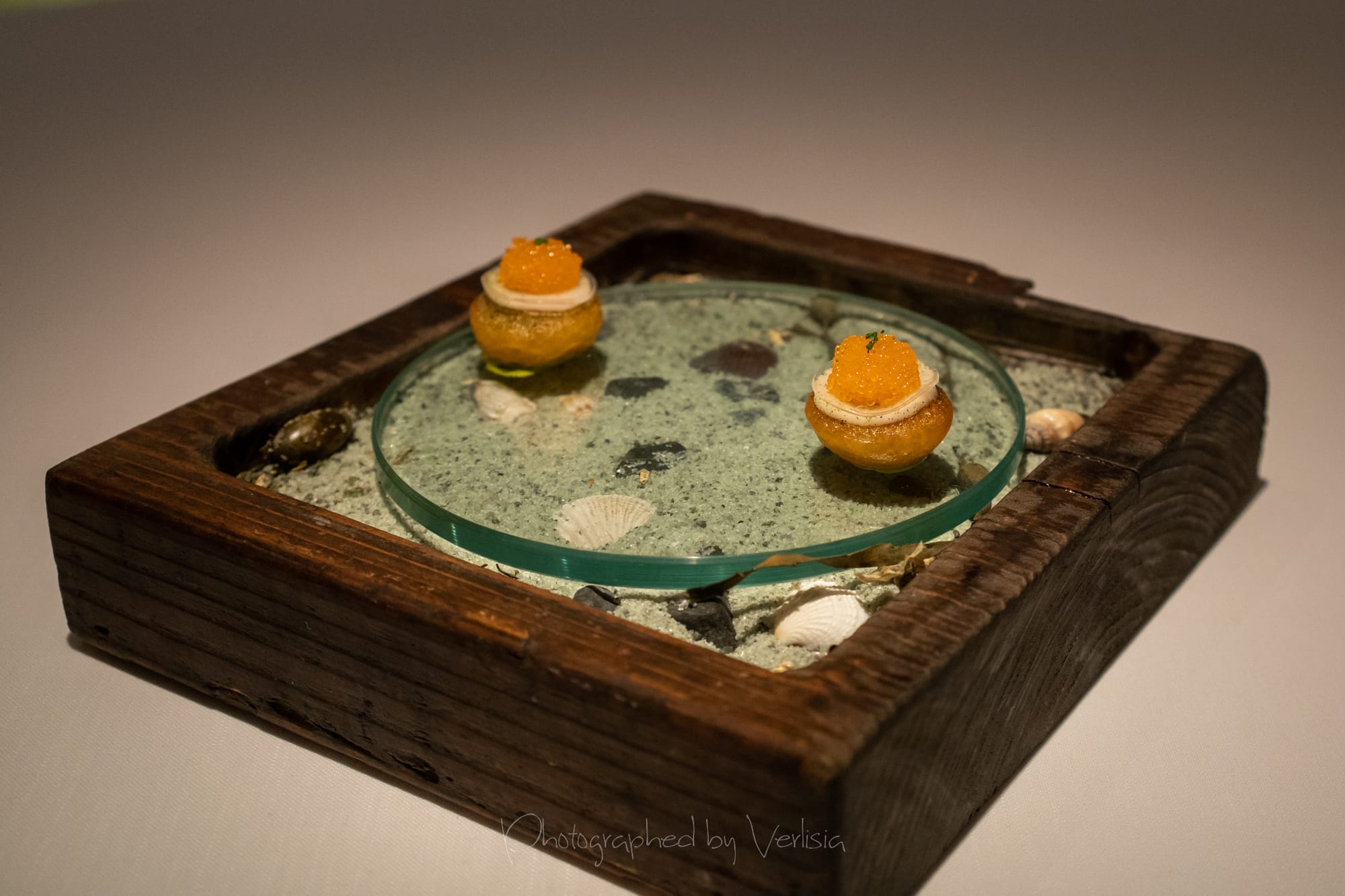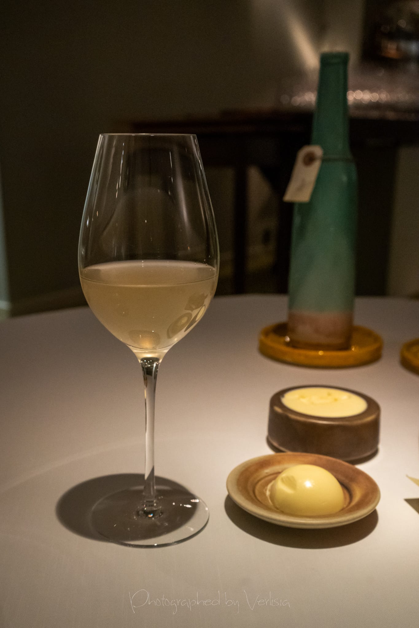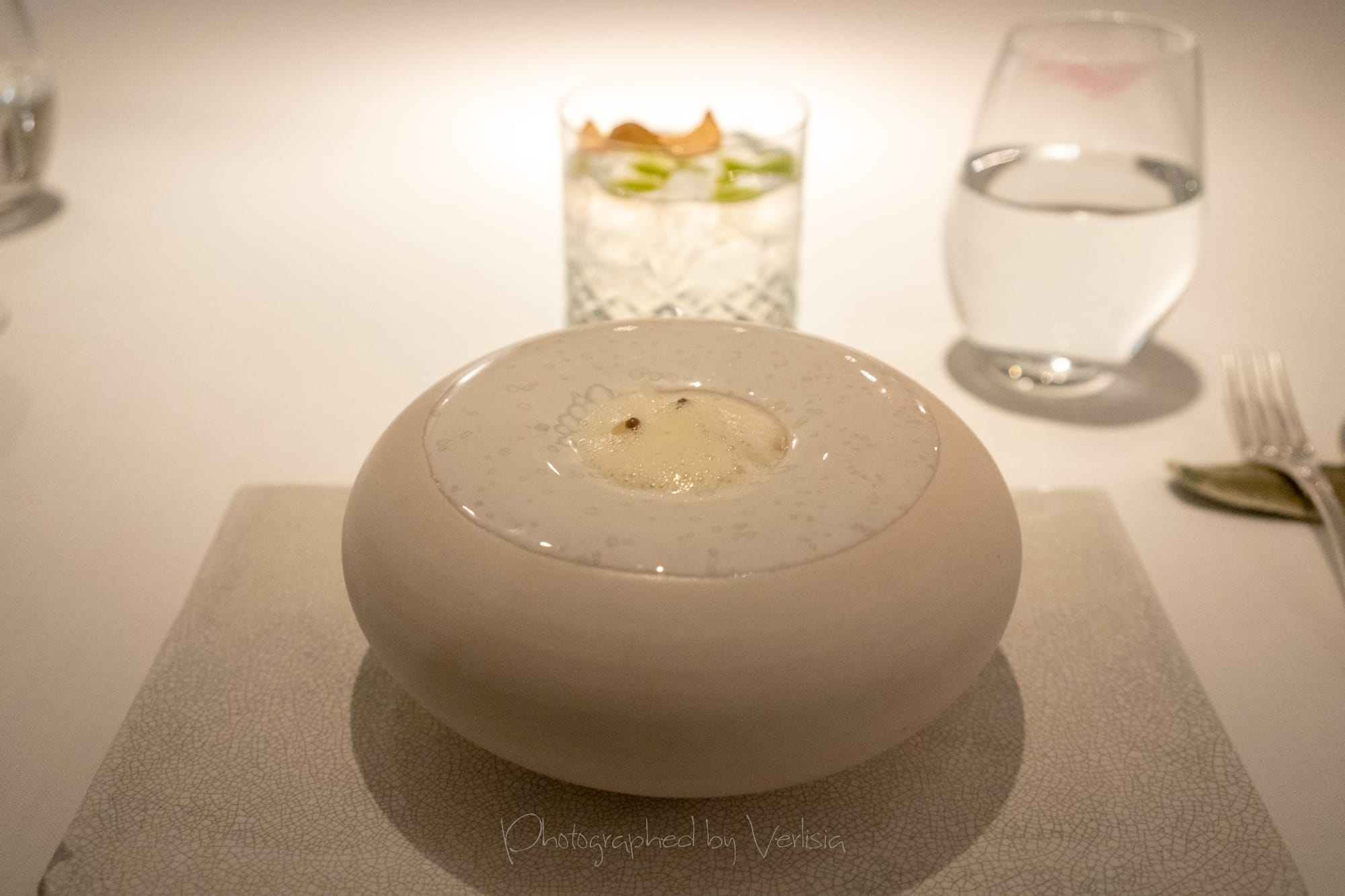 Wine Pairing - Michele Chiarlo, Gavi del Comune di Gavi, Cortese, Gavi 2002. Non-Alcoholic Paring - Blueberry. Oysters and Pearls - oyster, pike perch & turnip.