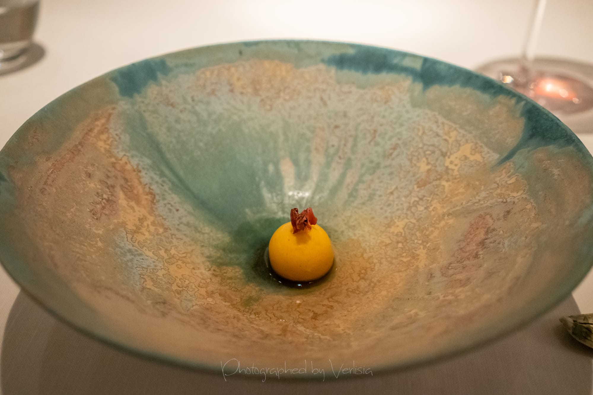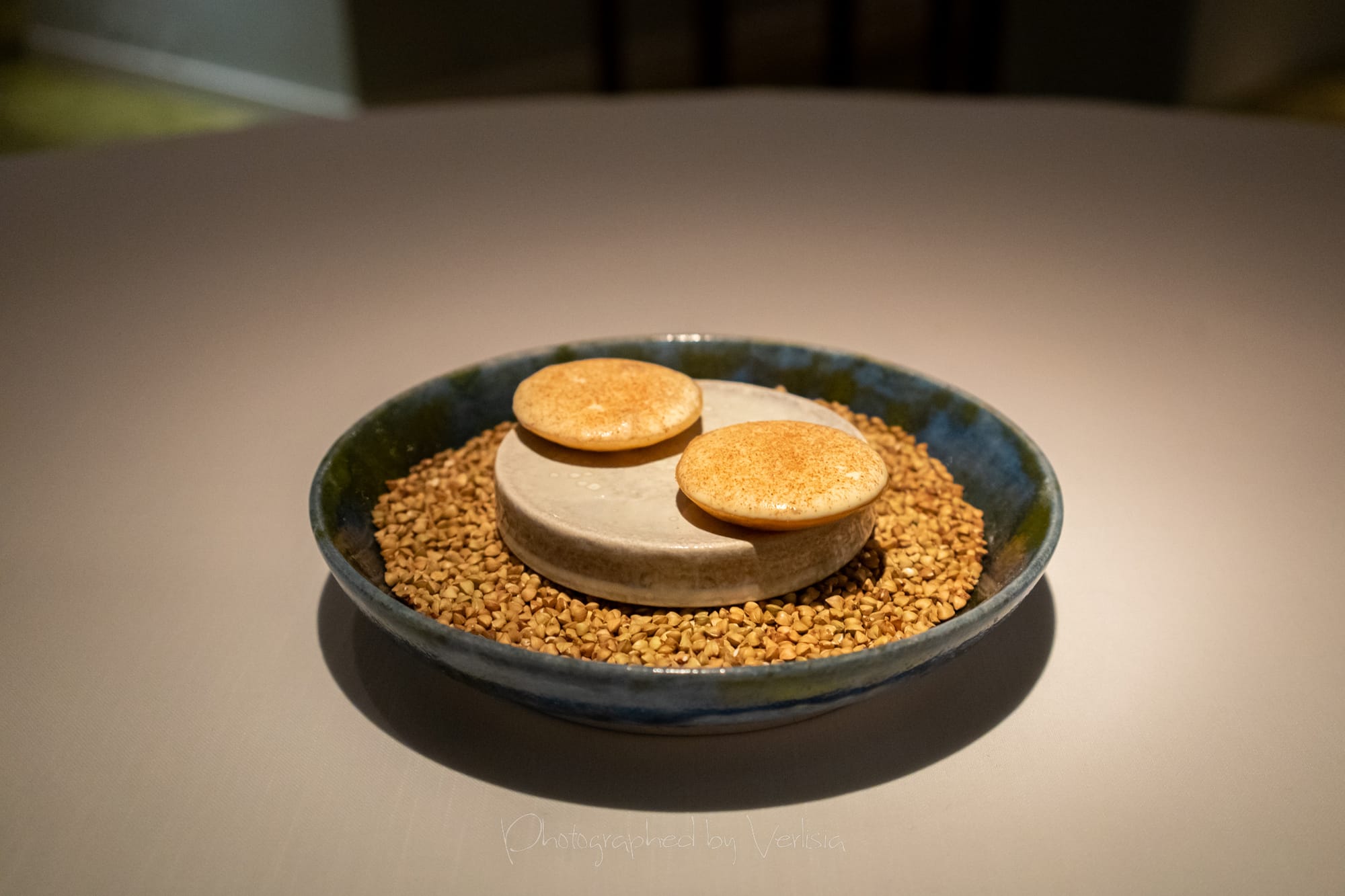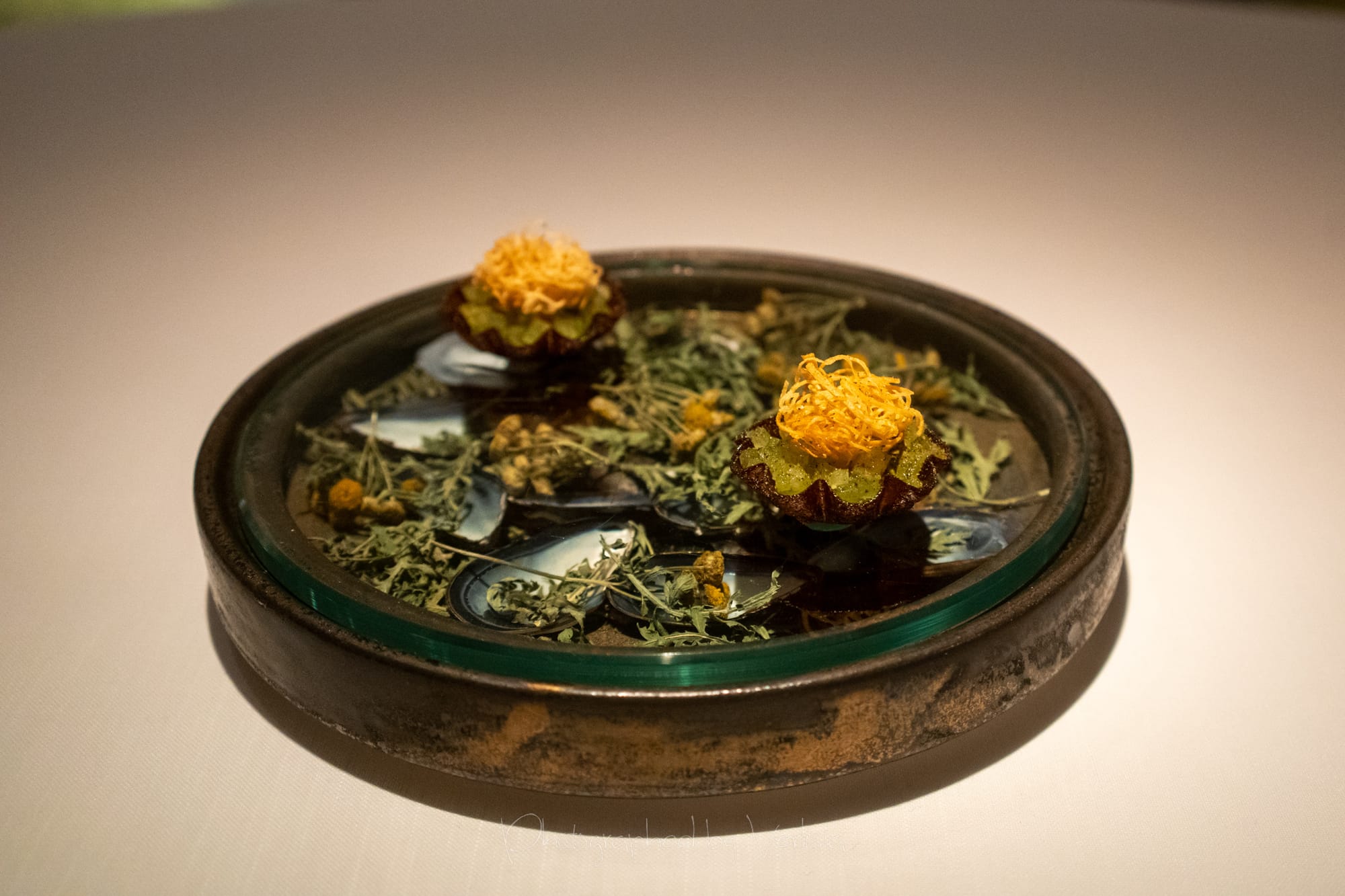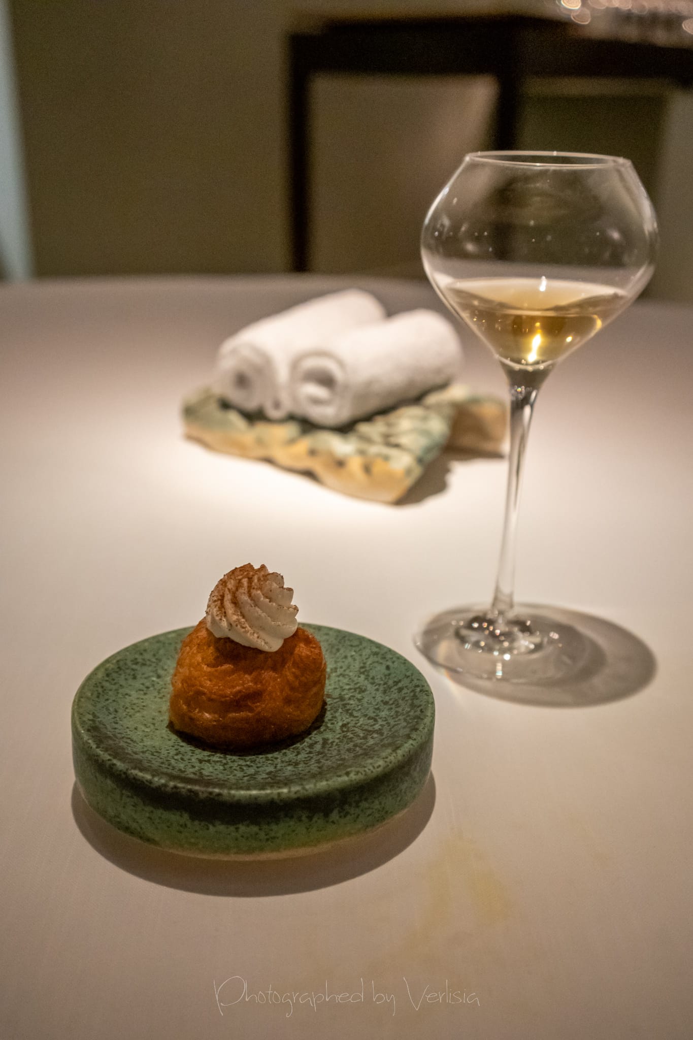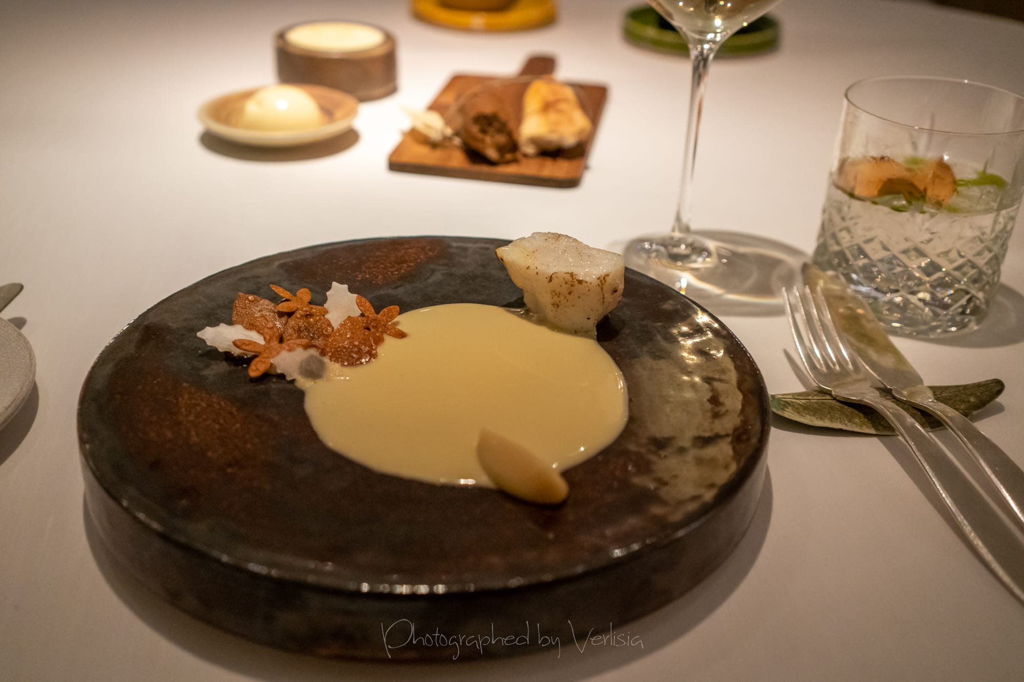Wine Pairing - Michele Chiarlo, Gavi del Comune di Gavi, Cortese, Gavi 2002. Non-Alcoholic Paring - Blueberry. Oysters and Pearls - oyster, pike perch & turnip.