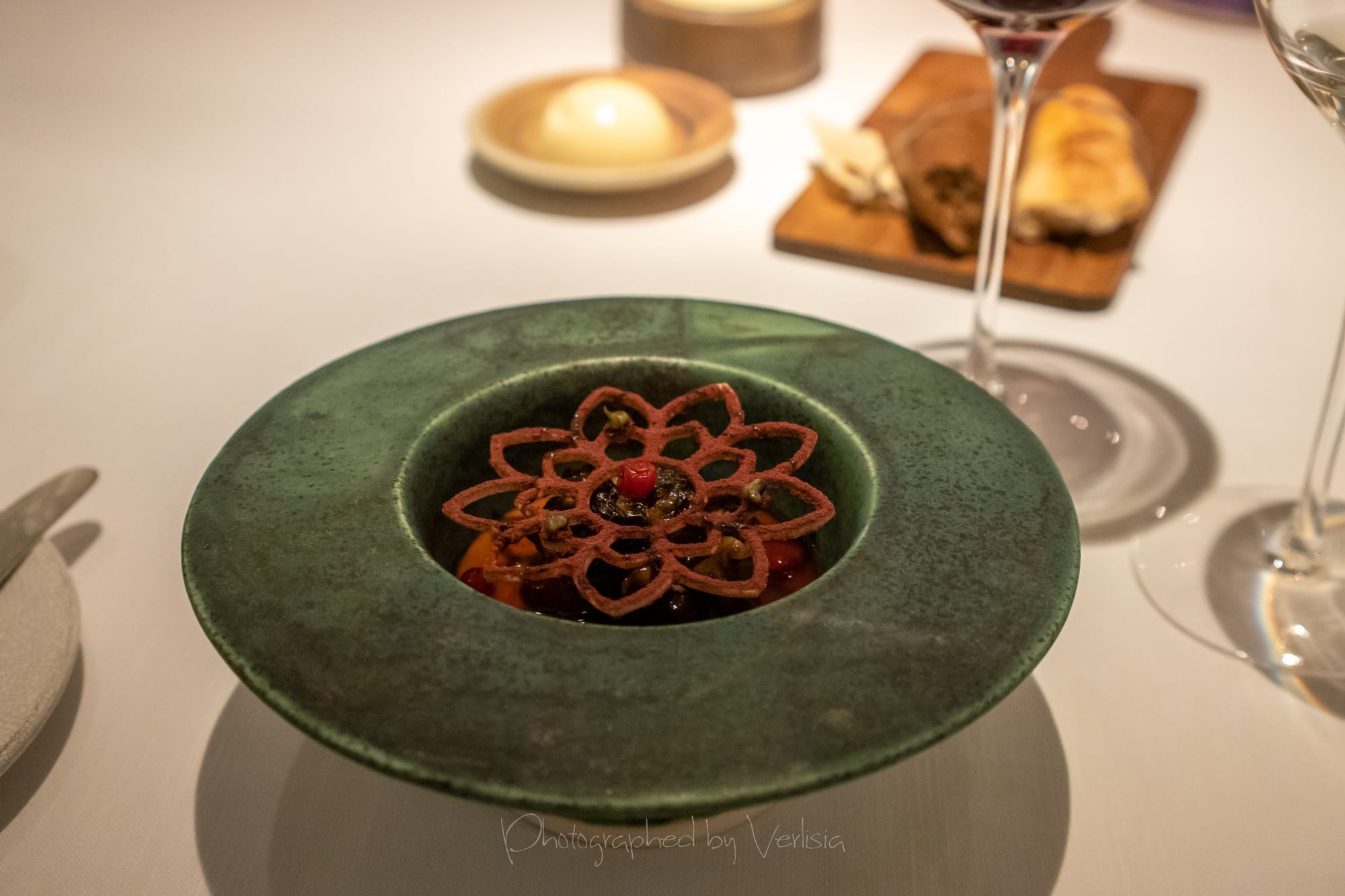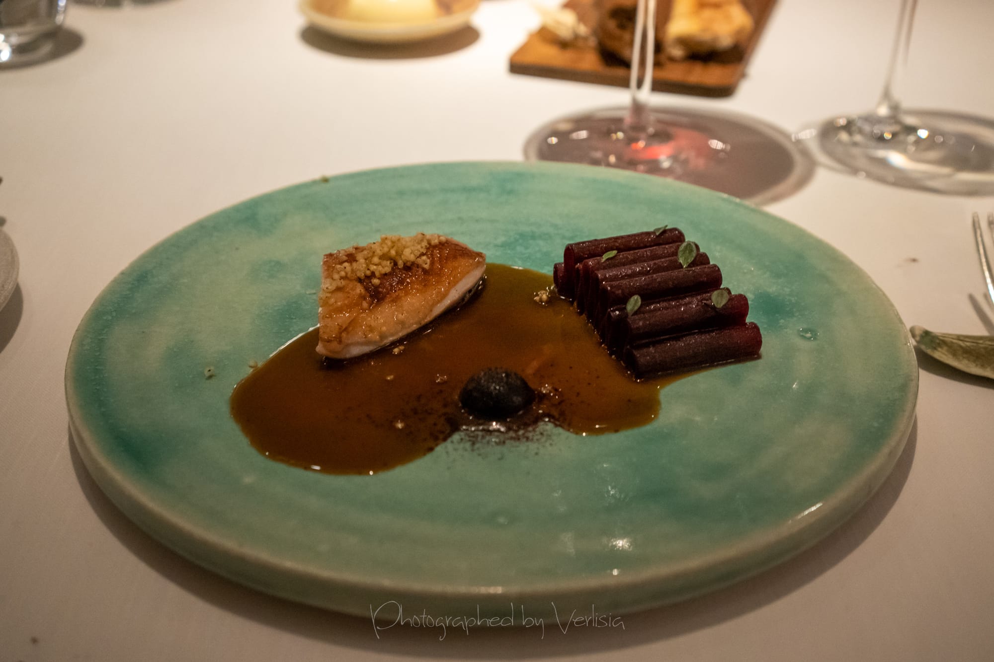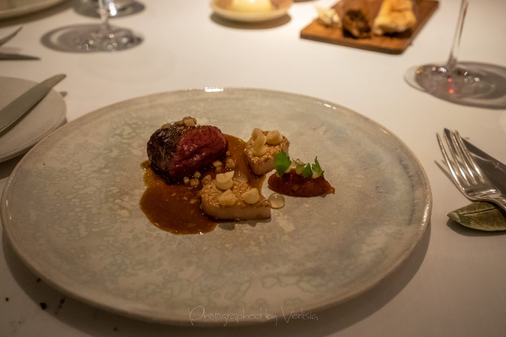 Wine Pairing - Castello Colle Massari, Songiovese, Montecucco 2018. Non-Alcoholic Pairing - Blackberry. Spicy Soil - Venison, Pepper & Celeriac