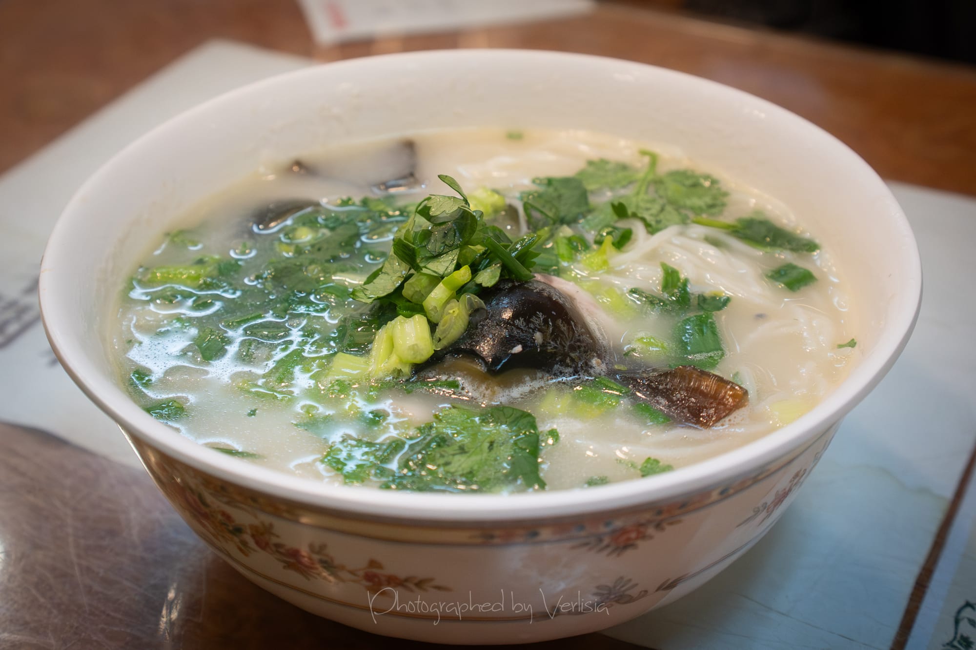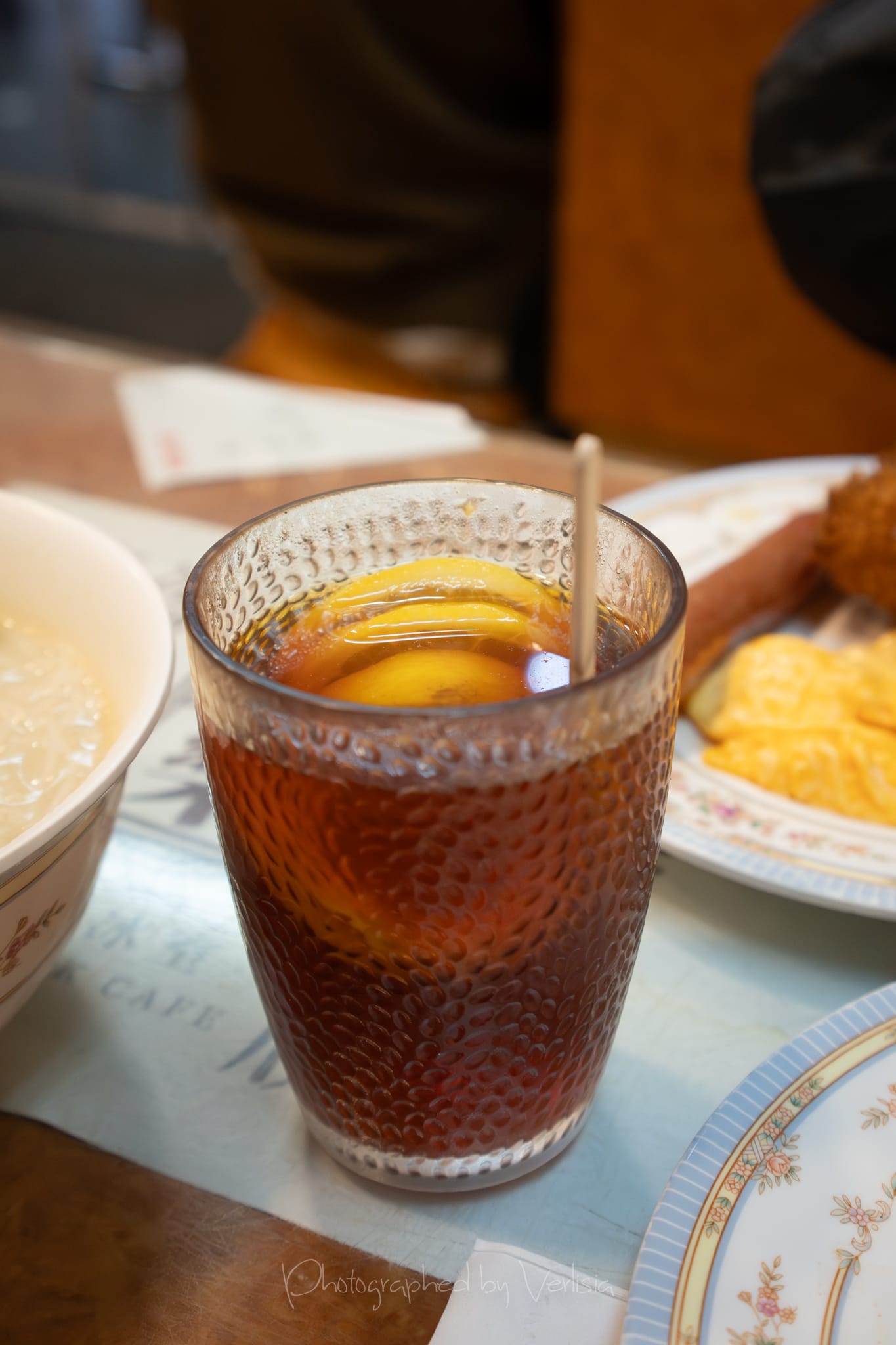 Breakfast Set B5 - Fish Slice and Preserved Egg Rice Noodles, Hot Lemon Tea