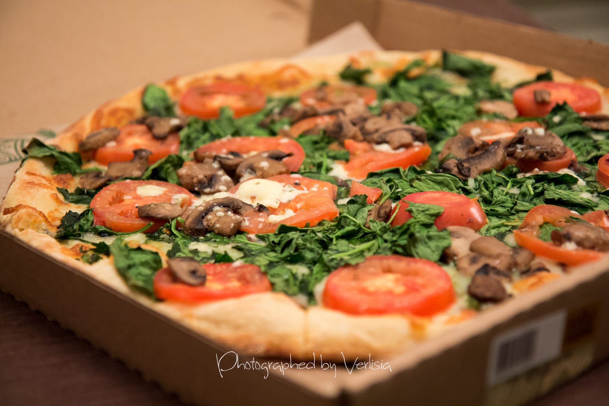 Spinach, Tomato, Mushroom and Blue Cheese Pizza