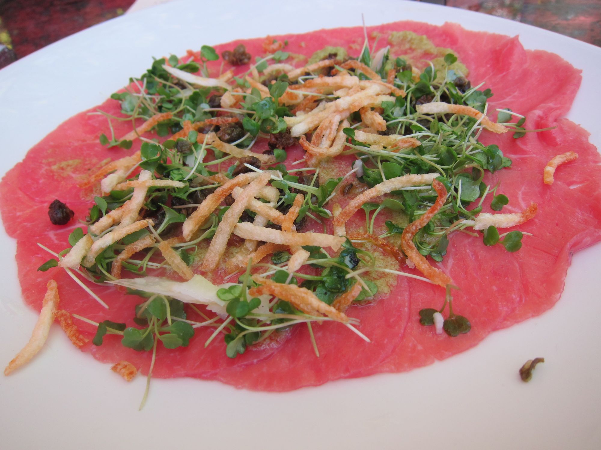 Rich Spicy Red, Carneros Sideways, Watermelon and Watercress SaladBeef Carpaccio, P.E.I. MusselsGrilled Berkshire Pork Chop, Prosciutto Wrapped CodSpiced Rubbed Young Chicken, Petite Hanger SteakCrispy Skinned Wild Salmon, Pan Seared Day Boat ScallopsCreme Brulee, Chocolate Lava CakeSweet Finales