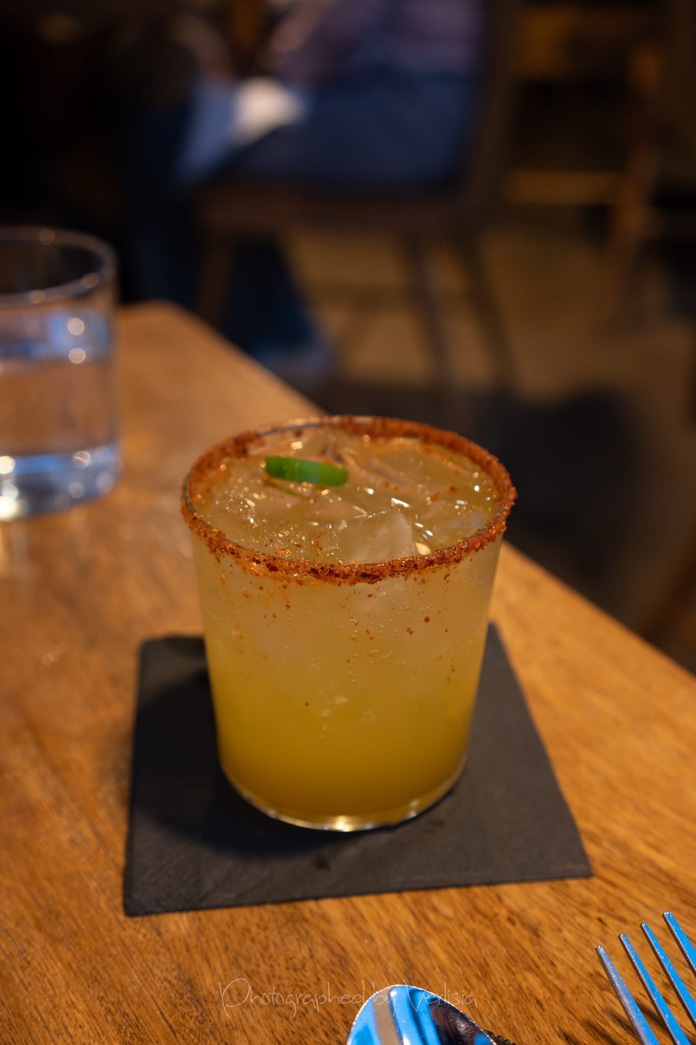Cold Pressed Cocktail - Harvest Moon (Wild Turkey Bourbon, apple, cinnamon, ginger), Kimchi Pancakes (daikon radish, radish sprouts, scallions)