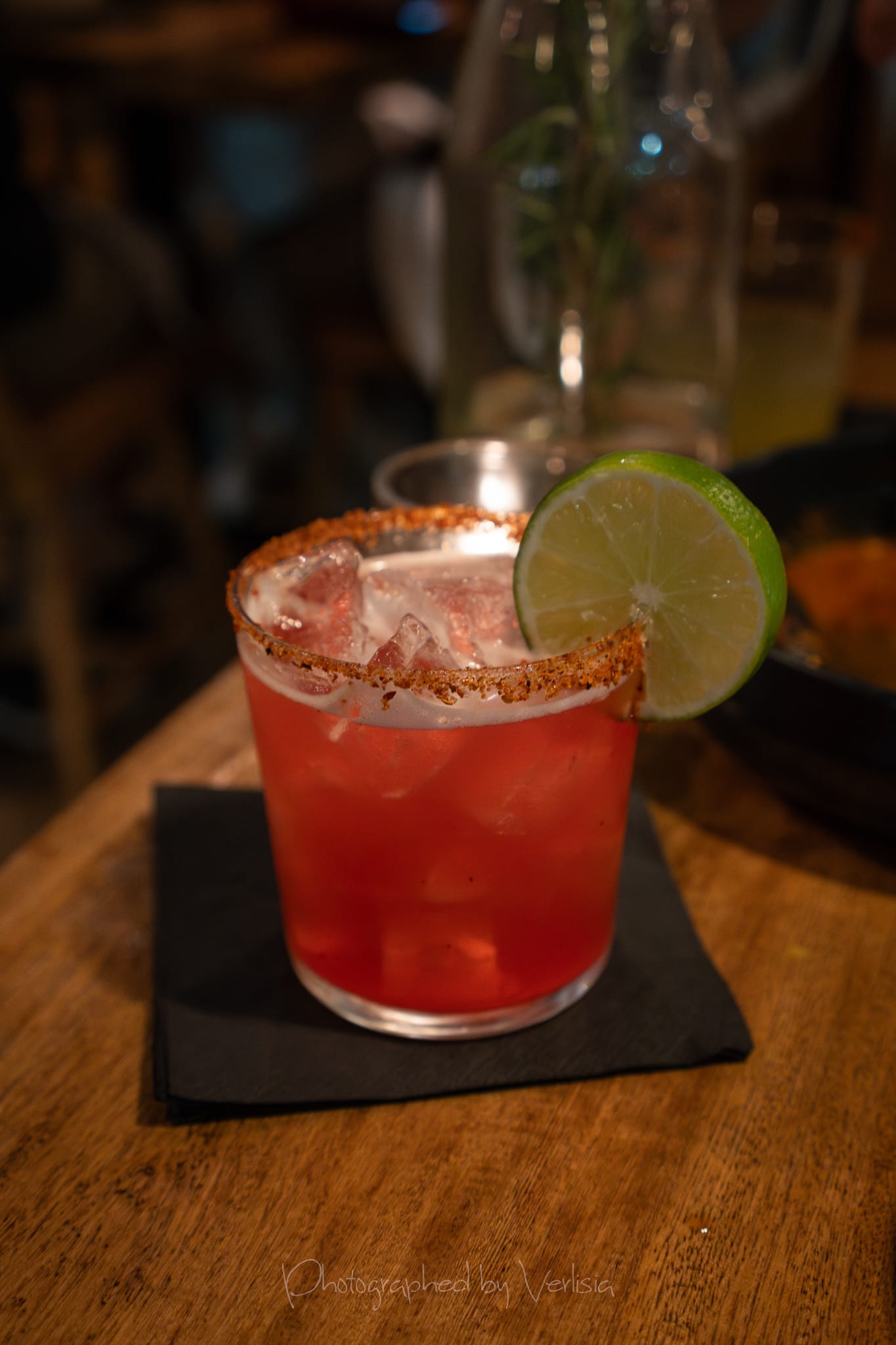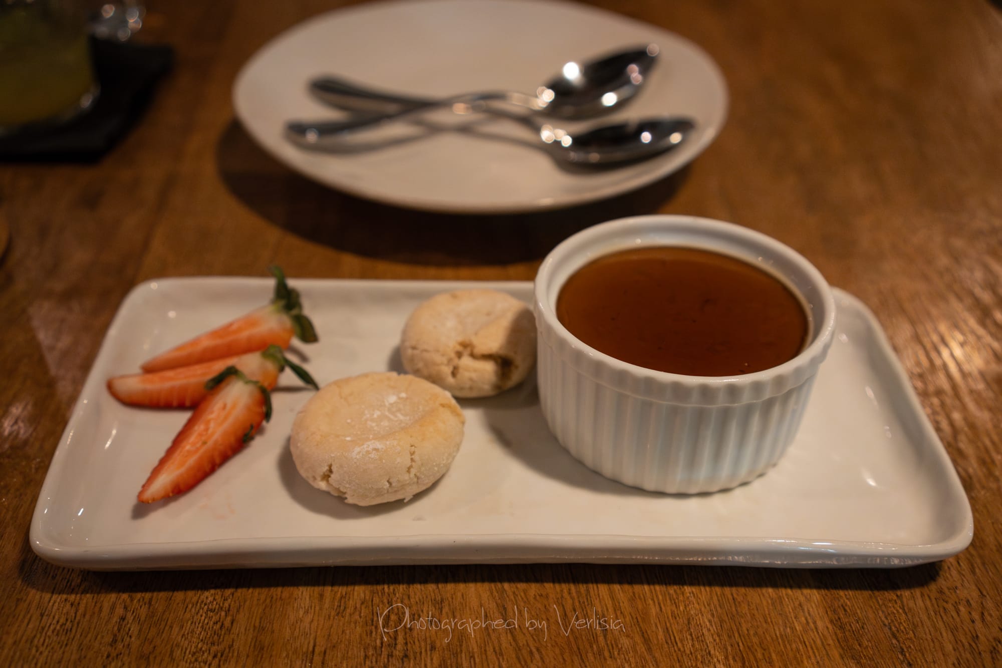 Spring Cocktail - Spicy Hibiscus Margarita (Lalo Tequila, lime, jalapeno, Tajin), Espresso Panna Cotta (brown sugar glaze, amaretti cookies)