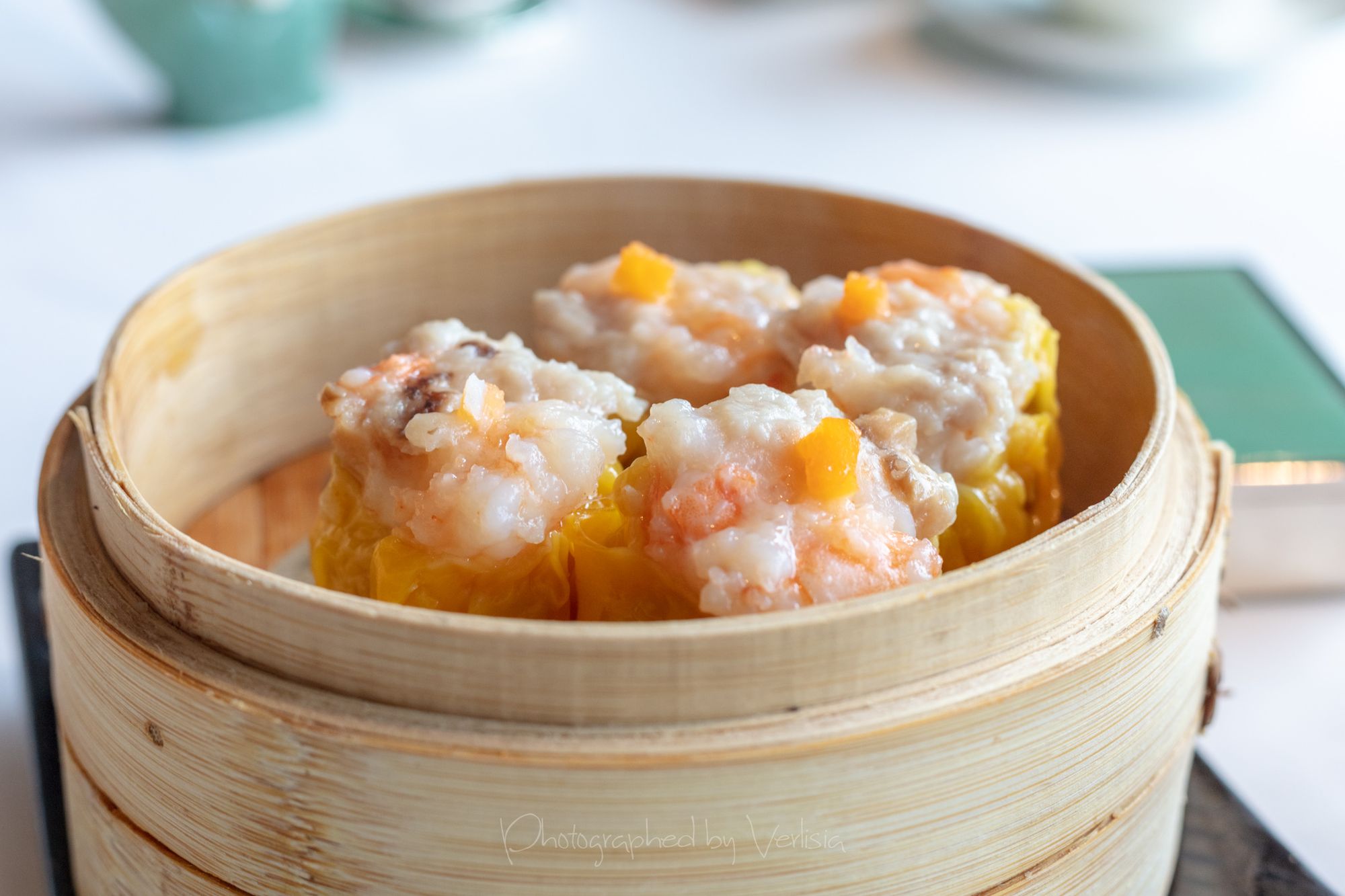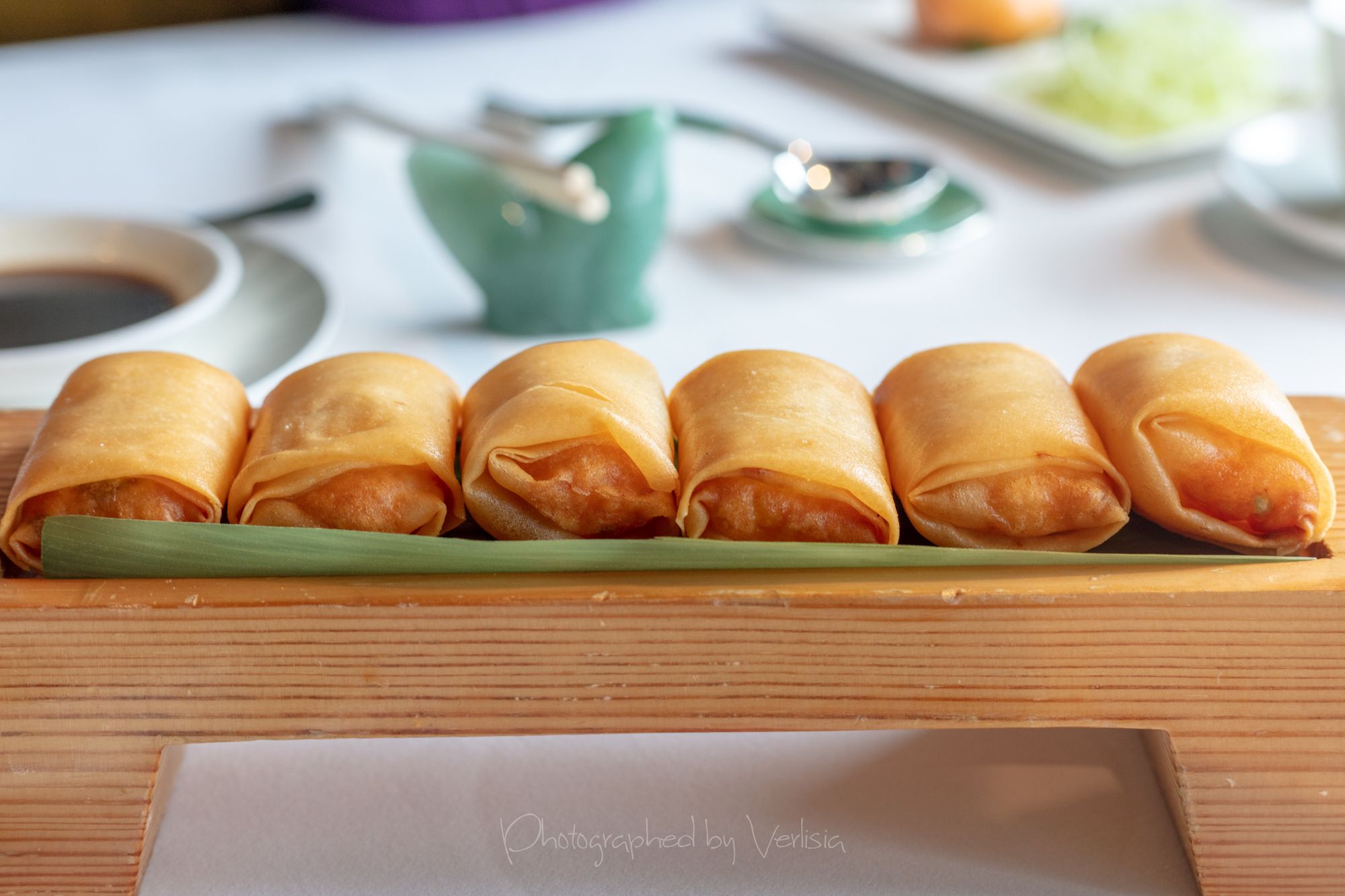 Steamed Pork and Prawn Dumplings with Crabmeat Roe, Crispy Spring Rolls with Seafood, Double Boiled Fish Maw and Sea Whelk