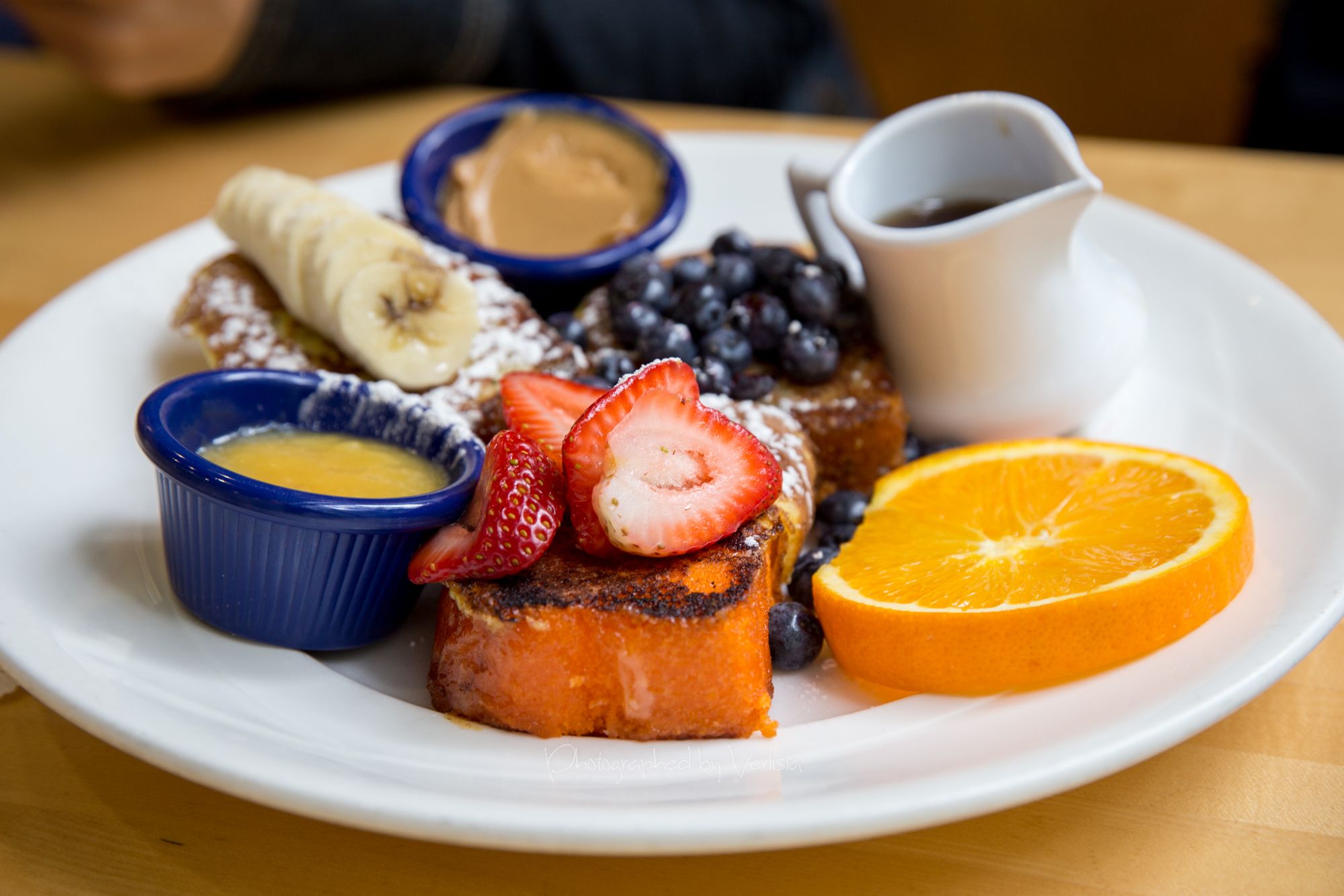 Good Morning Burger (8oz burger topped with american cheese, hickory smoked bacon & a fried egg), Tour de France (Banana nut bread with bananas, Sweet orange bread with strawberries. Lemon poppyseed bread with blueberries)