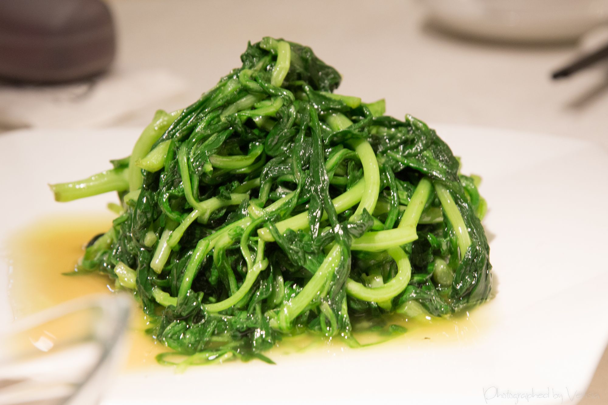 Pea Sprout Stir Fried, Soft Tofu with Crab Roe and Crab Meat, Eel 'Paste'