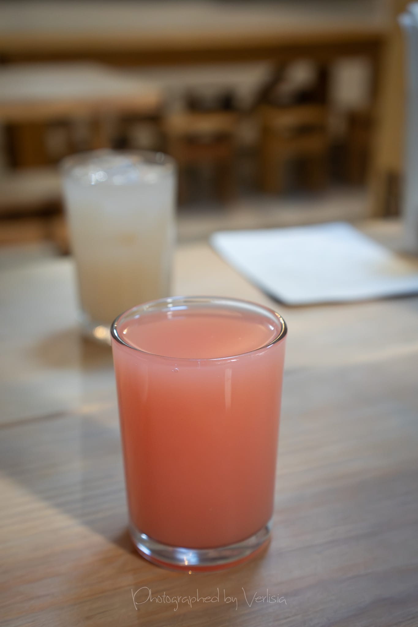 Jugo de toronja; Torta de Chorizo de Arenal (frijol pajarito, salsa verde cruda, encurtidos)