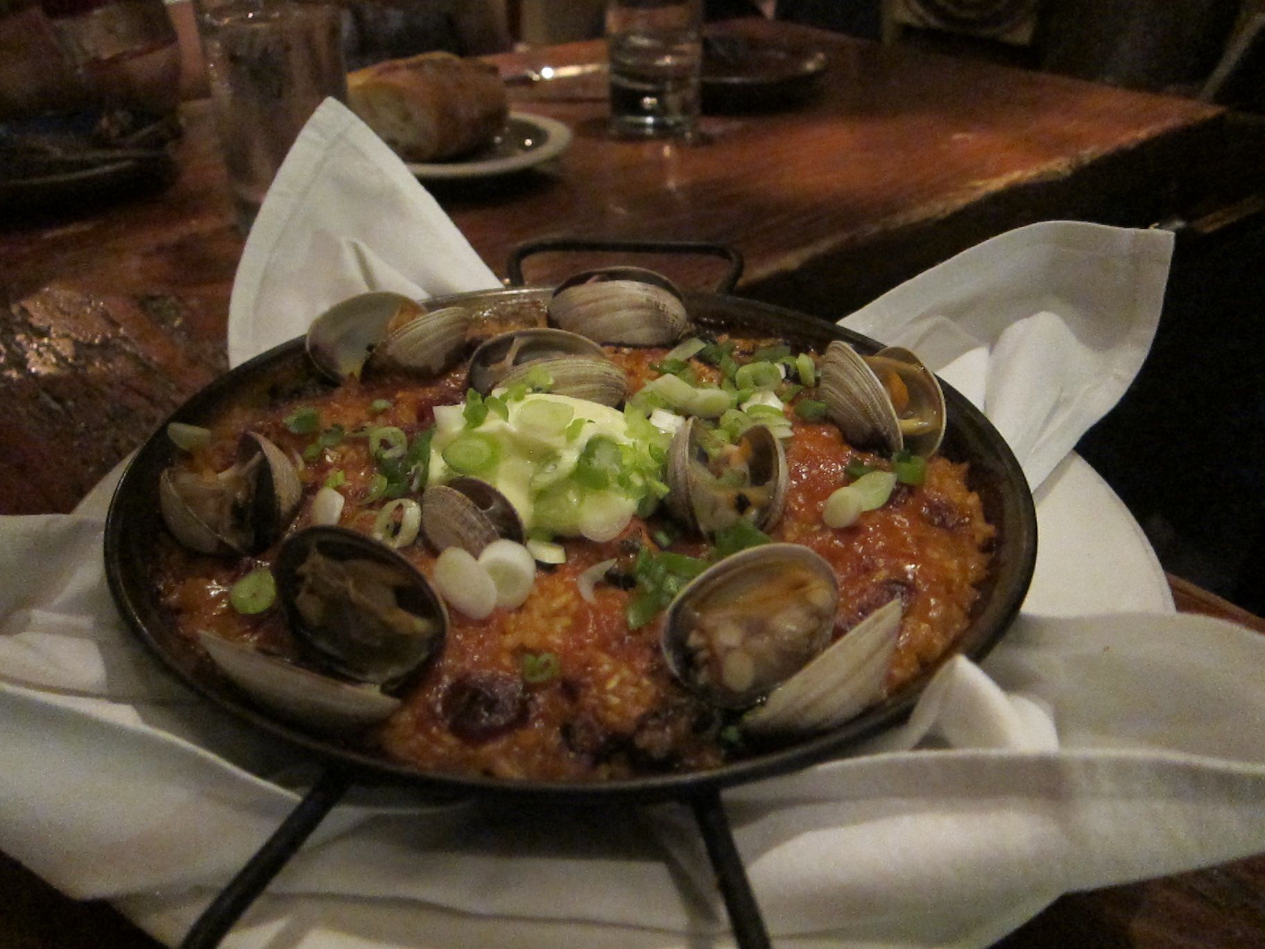 A Dish of Mediterranean Olives, Sauteed Hen of the Woods Mushrooms on Brioche Toast with Slow Roasted ShallotsTunisian Brik Pastry filled with Dungeness Carb, Organic Egg & Green Onions, Tortilla Espanola, Toasted Sardinian CouscousSonoma Coast Lamb Chops, Roasted Fingerling Potatoes with Sping Onion, Baby Carrots & Green Garlic CreamNiman Ranch Grass Fed Flat-Iron Steak, Paella del Dia, Tres Leche Cake